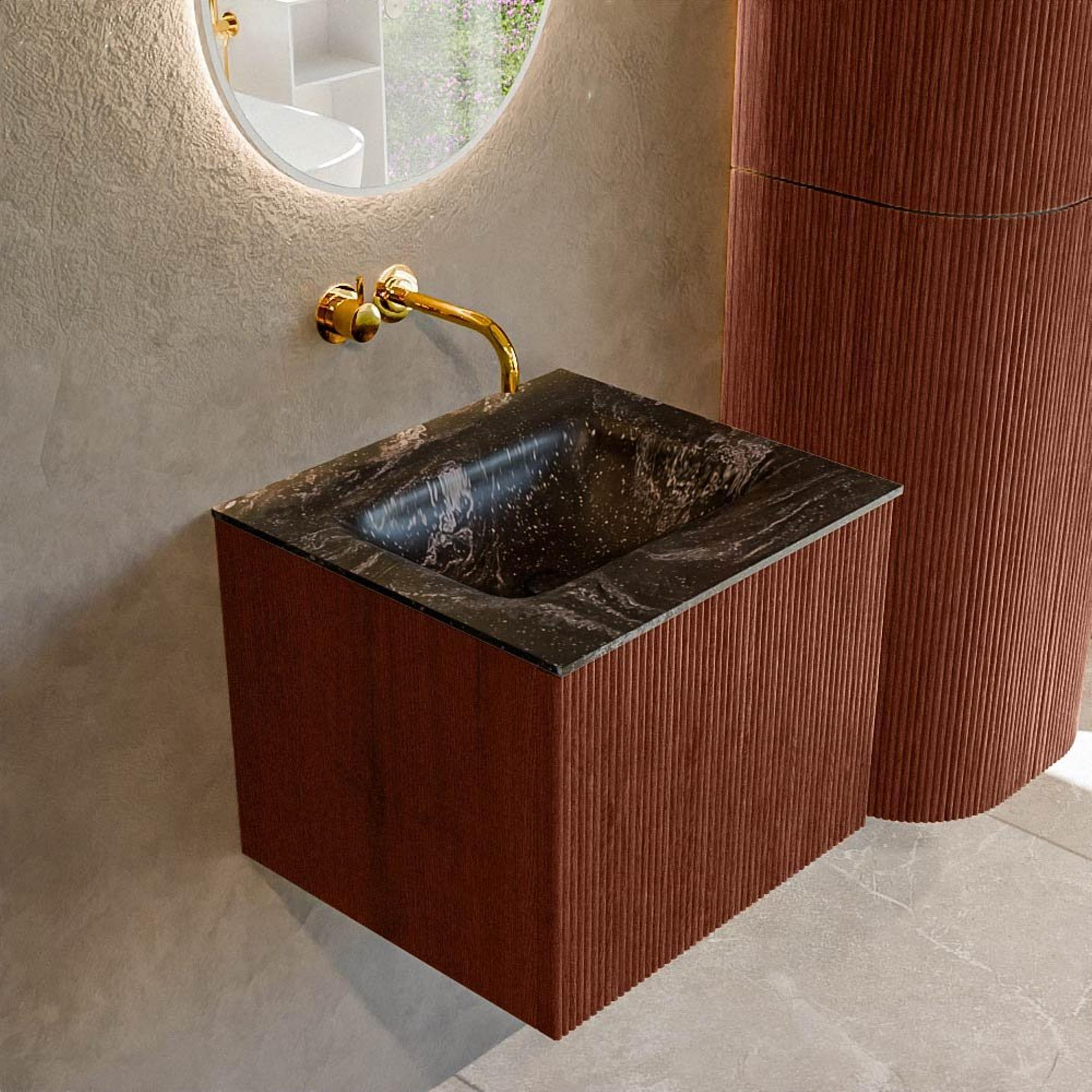 Mondiaz KURVE-DLUX Ensemble de meuble - 50x46x40cm - 1 tiroir - lavabo en solid surface - milieu - sans trou de robinet - Ruby