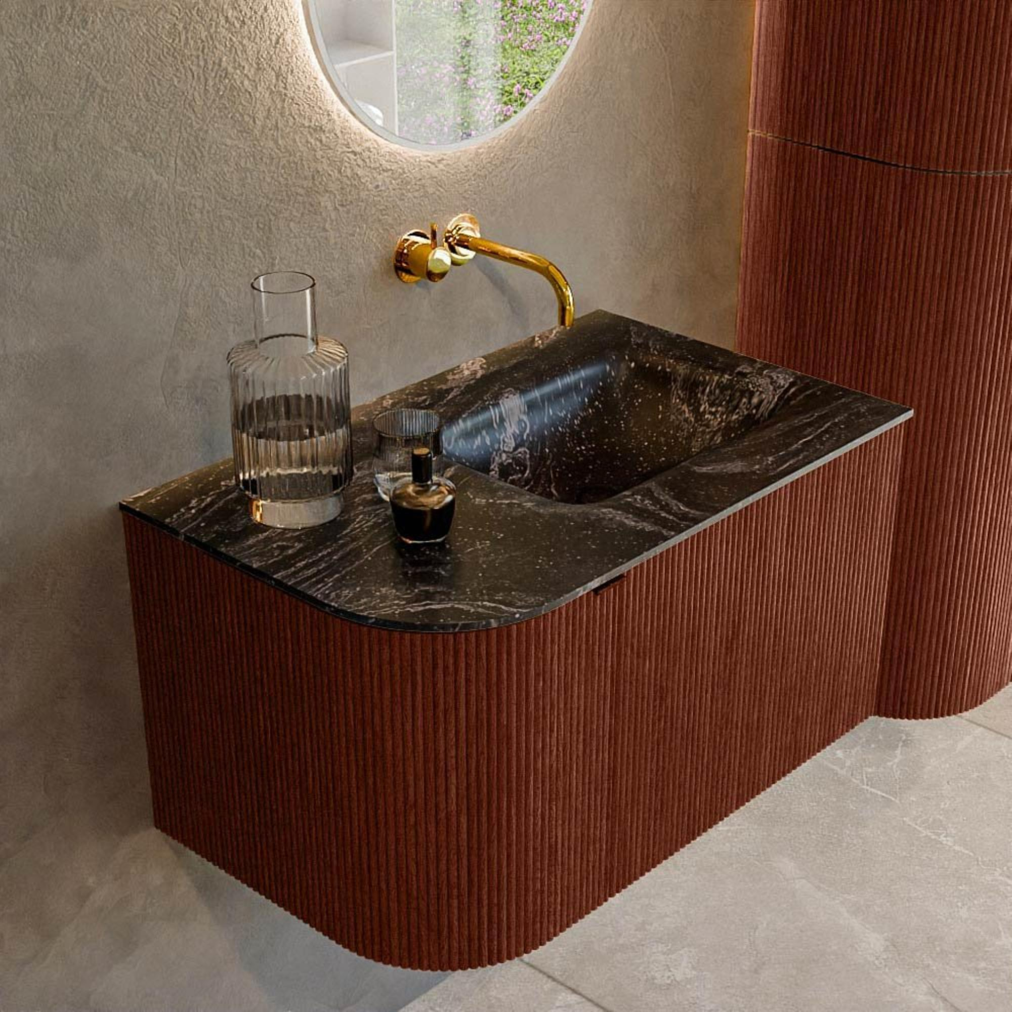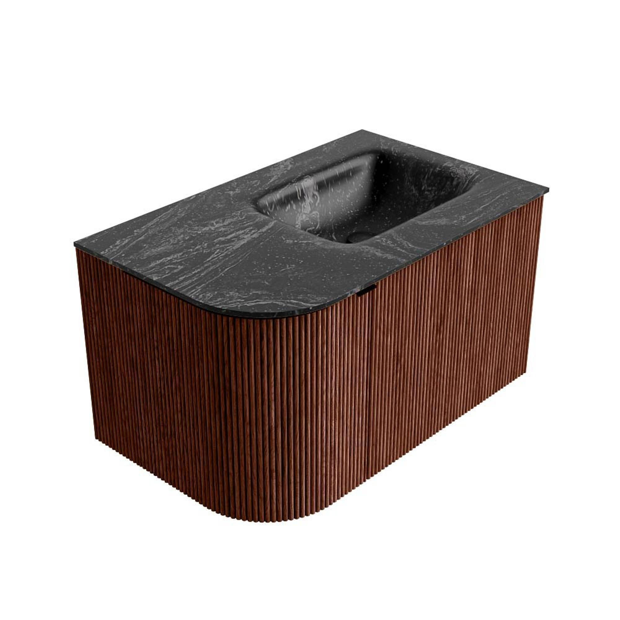 Mondiaz KURVE-DLUX Ensemble de meuble salle de bain - 75x46x40cm - 1 tiroir - 1 porte - lavabo en solid surface - droite - sans trou de robinet - Ruby