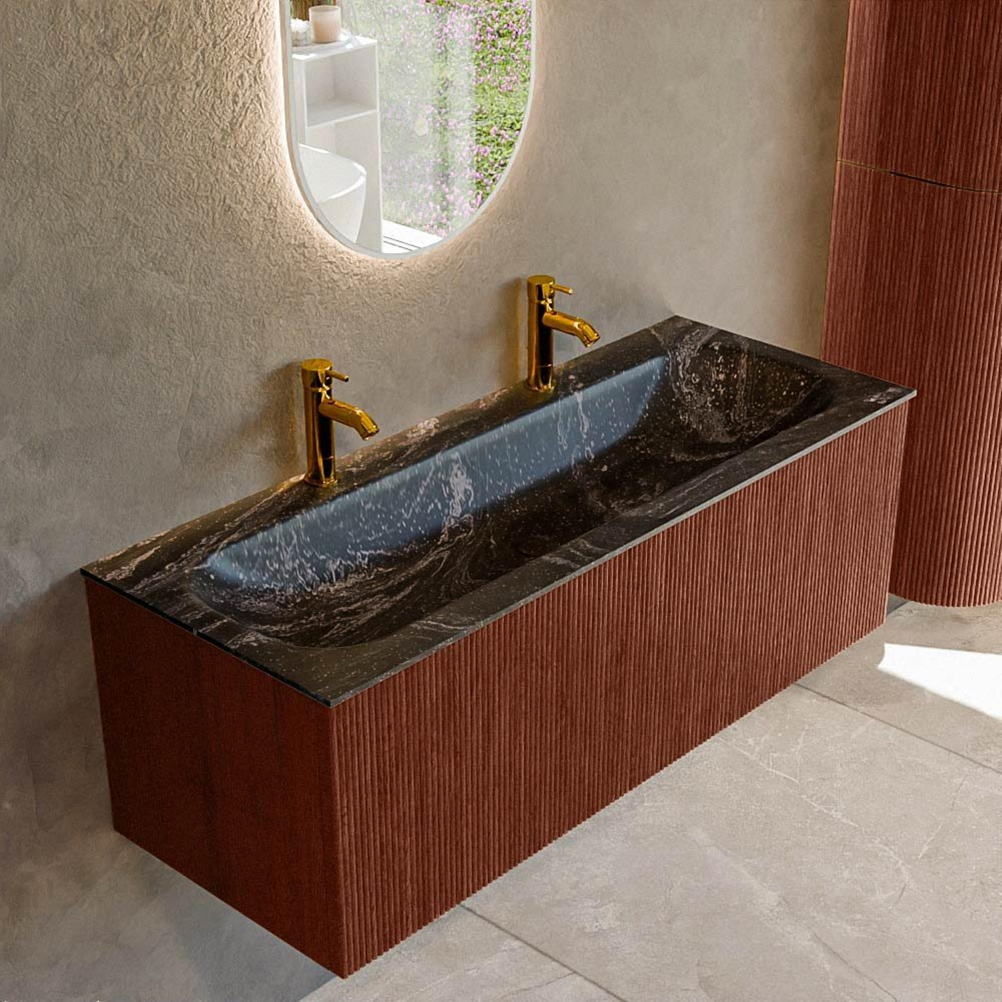 Ensemble de meuble de salle de bain Mondiaz KURVE-DLUX - 120x46x40cm - 1 tiroir - lavabo en solid surface - centre - 2 trous de robinet - Ruby