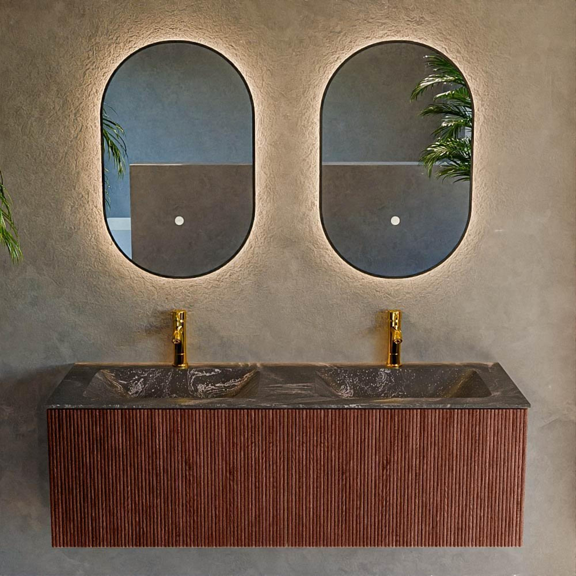 Mondiaz KURVE-DLUX Ensemble de meuble salle de bain - 130x46x40cm - 2 tiroirs - lavabo en solid surface - double - 2 trous de robinet - Ruby