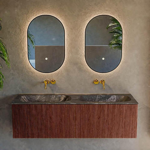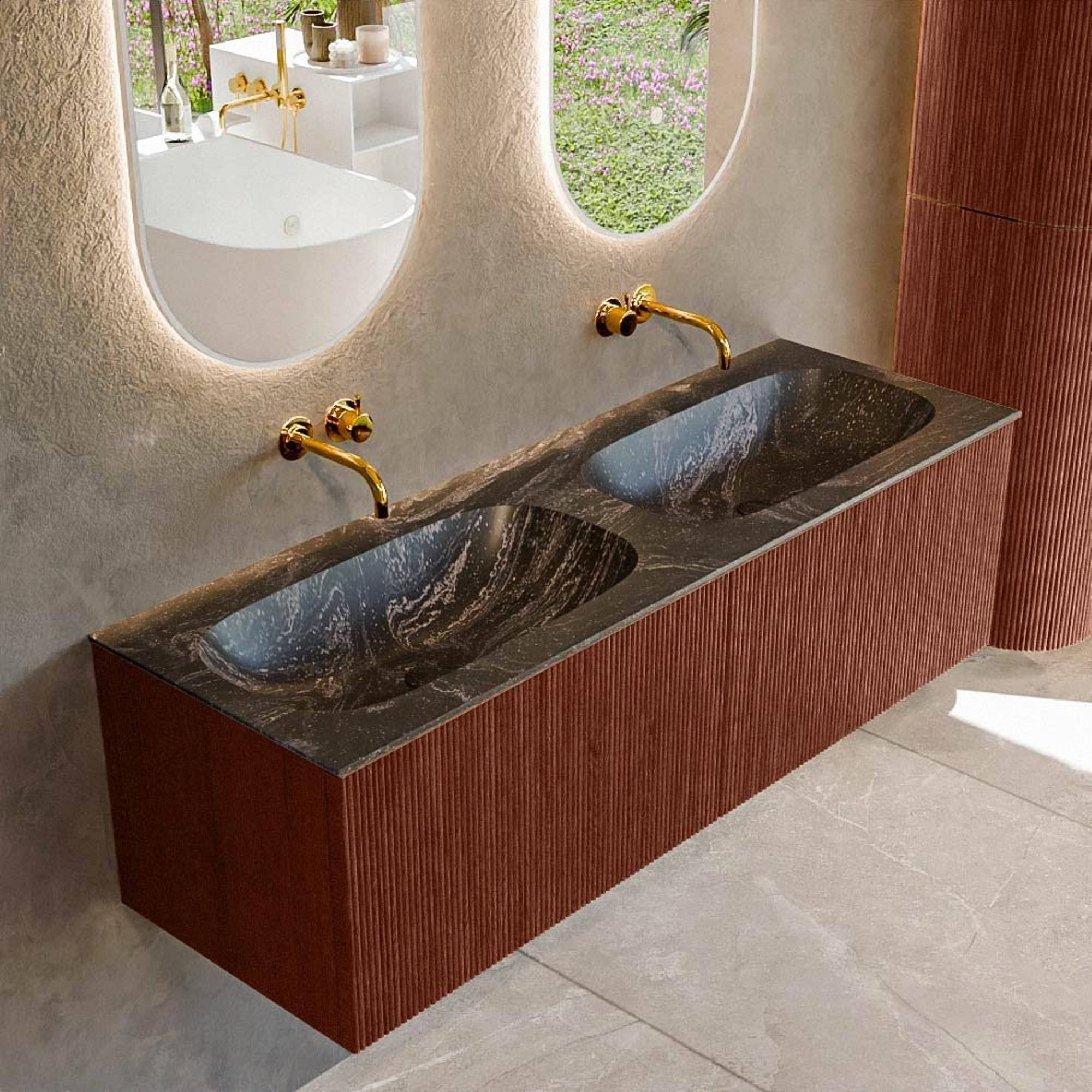 Ensemble de meuble de salle de bain Mondiaz KURVE-DLUX - 140x46x40cm - 2 tiroirs - lavabo en solid surface - double - sans trou de robinet - Ruby