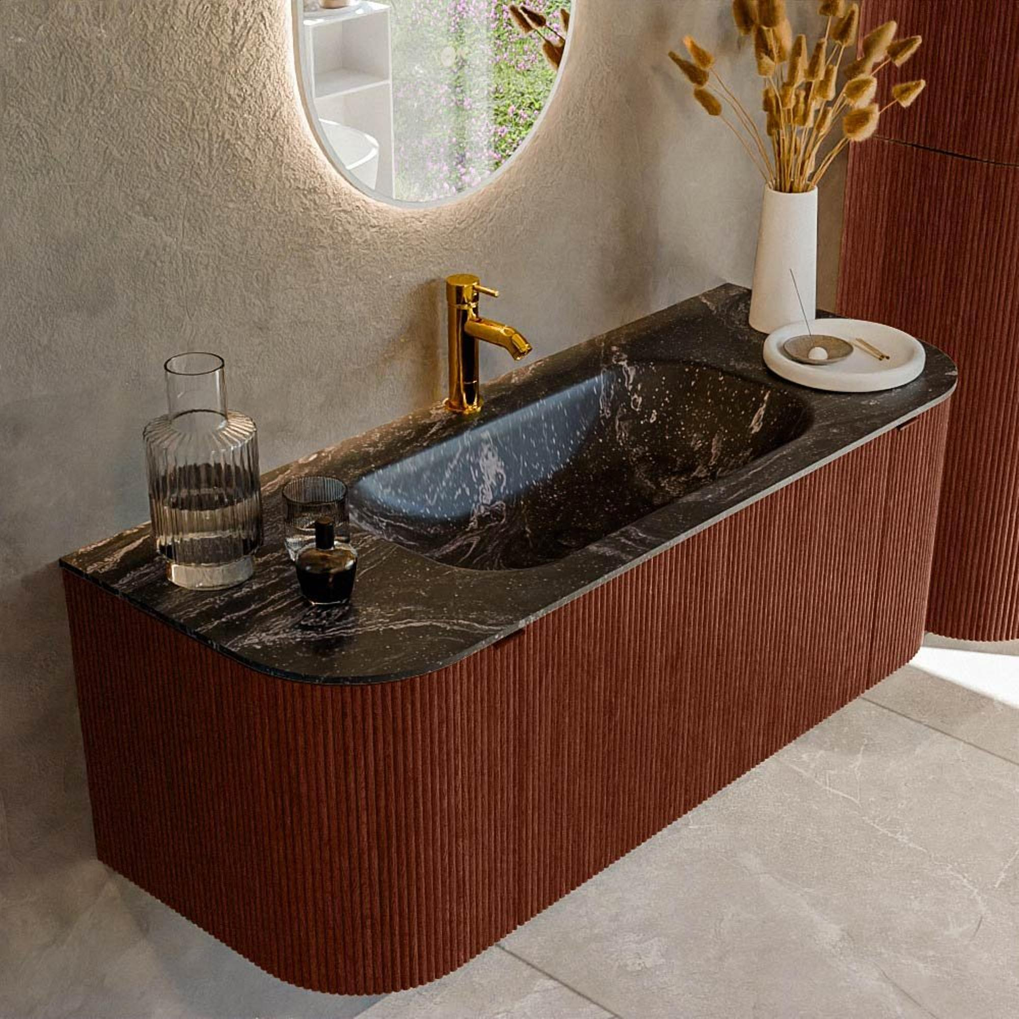 Mondiaz KURVE-DLUX Ensemble de meuble - 120x46x40cm - 1 tiroir - 2 portes - lavabo en solid surface - milieu - 1 trou de robinet - Ruby