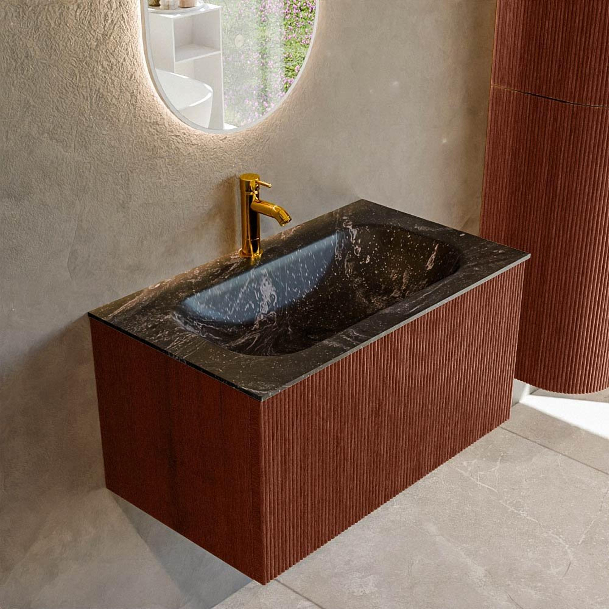 Mondiaz KURVE-DLUX Ensemble de meuble salle de bain - 80x46x40cm - 1 tiroir - lavabo en solid surface - milieu - 1 trou de robinet - Ruby