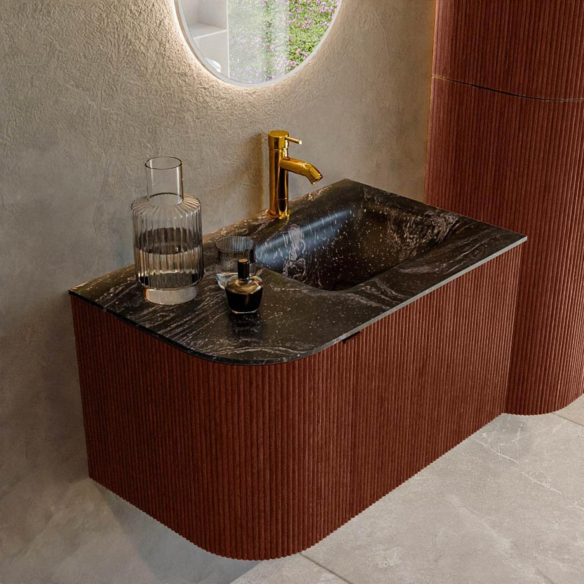 Mondiaz KURVE-DLUX Ensemble de meuble salle de bain - 75x46x40cm - 1 tiroir - 1 porte - lavabo en solid surface - droite - 1 trou de robinet - Ruby