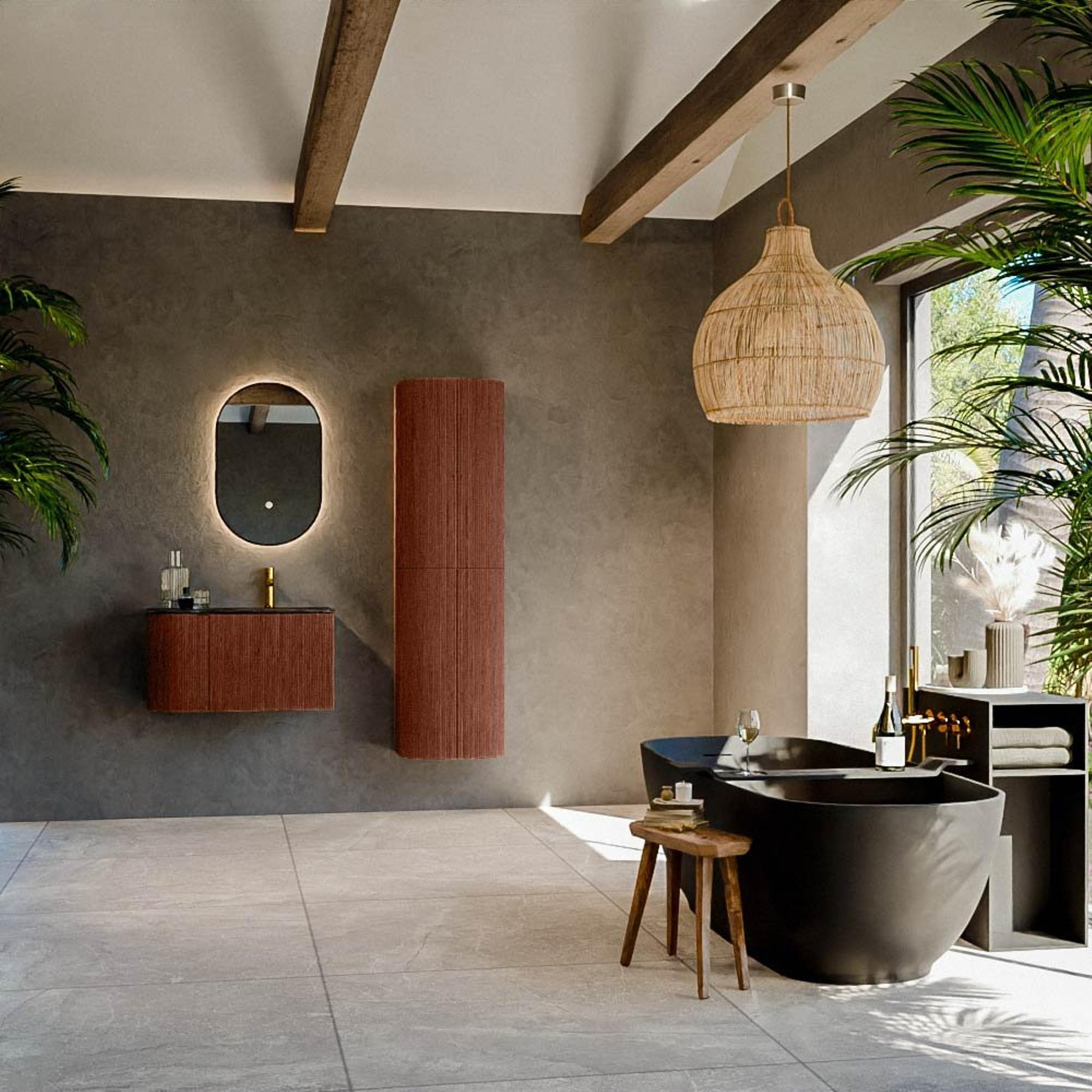 StyléCet Ensemble de meuble est l'incarnation du design stylé. Avec ses lignes épurées et son apparence minimaliste, il s'intègre parfaitement dans toute salle de bain moderne. Le schéma de couleurs Ruby offre une teinte accrocheuse qui donne immédiatement à votre espace une apparence luxueuse et exclusive. La combinaison du lavabo raffiné en solid surface et du tiroir et de la porte soigneusement conçus crée un look homogène qui dégage de l'élégance. Le design subtil du meuble est parfait pour donner à votre salle de bain une touche moderne sans renoncer à la fonctionnalité. Ainsi, ce n'est pas seulement un point focal, mais aussi un choix pratique qui contribue à un espace organisé et rangé. Que vous planifiez une transformation complète de la salle de bain ou que vous recherchiez un ajout stylé, cet ensemble de meuble offre exactement le bon mélange d'esthétique contemporaine et de praticité.