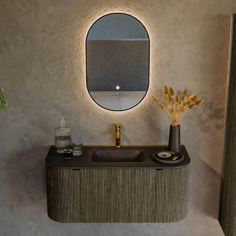 Mondiaz KURVE Ensemble de meuble salle de bain - 100x46x40cm - 1 tiroir - 2 portes - lavabo en solid surface - milieu - 1 trou de robinet - Shadow