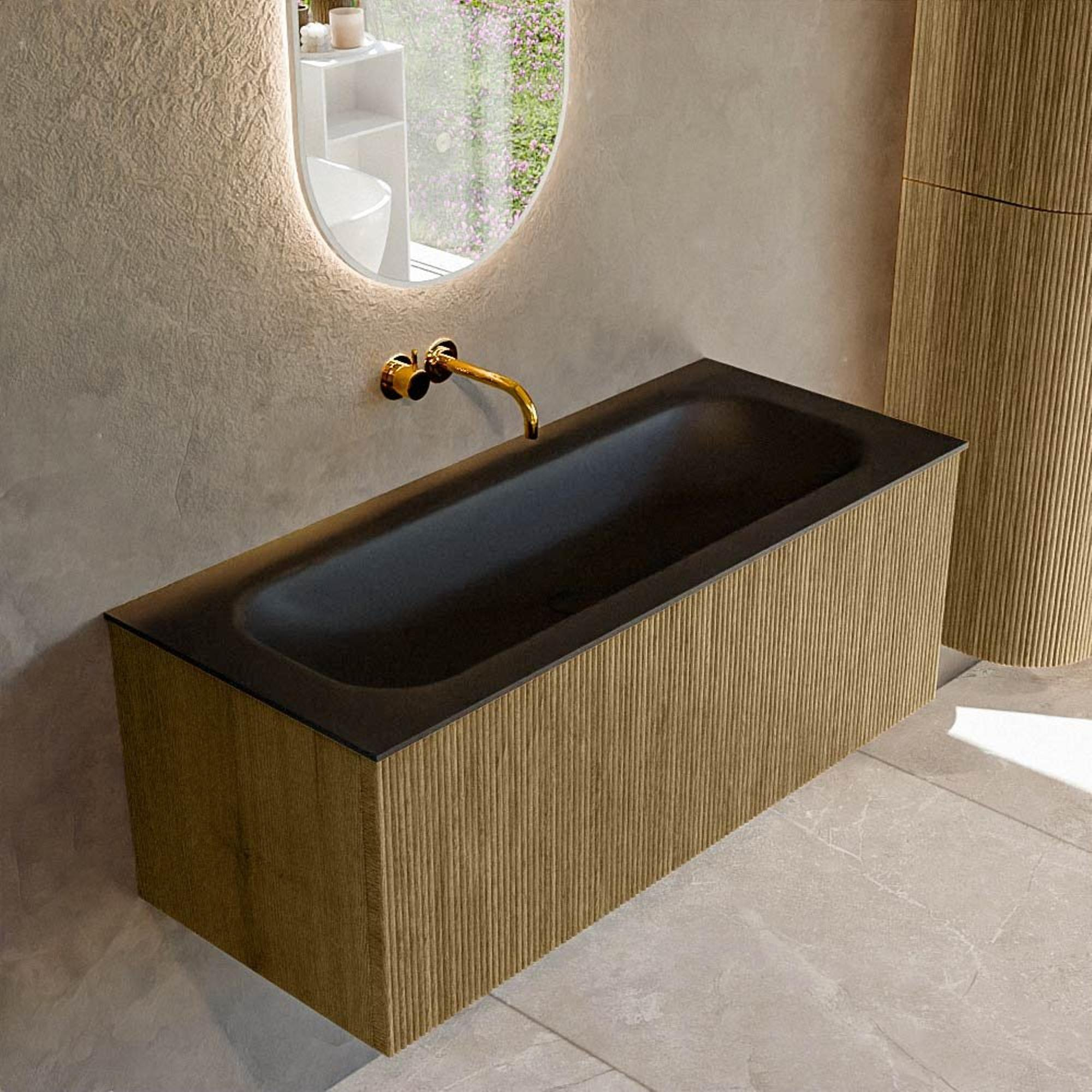 Mondiaz KURVE Ensemble de meuble salle de bain - 110x46x40cm - 1 tiroir - lavabo en solid surface - milieu - sans trou de robinet - Dusk