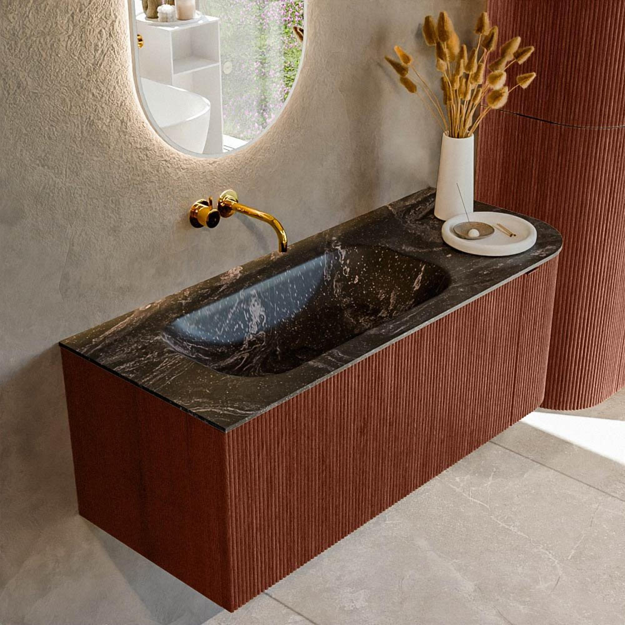 Mondiaz KURVE-DLUX Ensemble de meuble salle de bain - 115x46x40cm - 1 tiroir - 1 porte - lavabo en solid surface - gauche - sans trou de robinet - Ruby