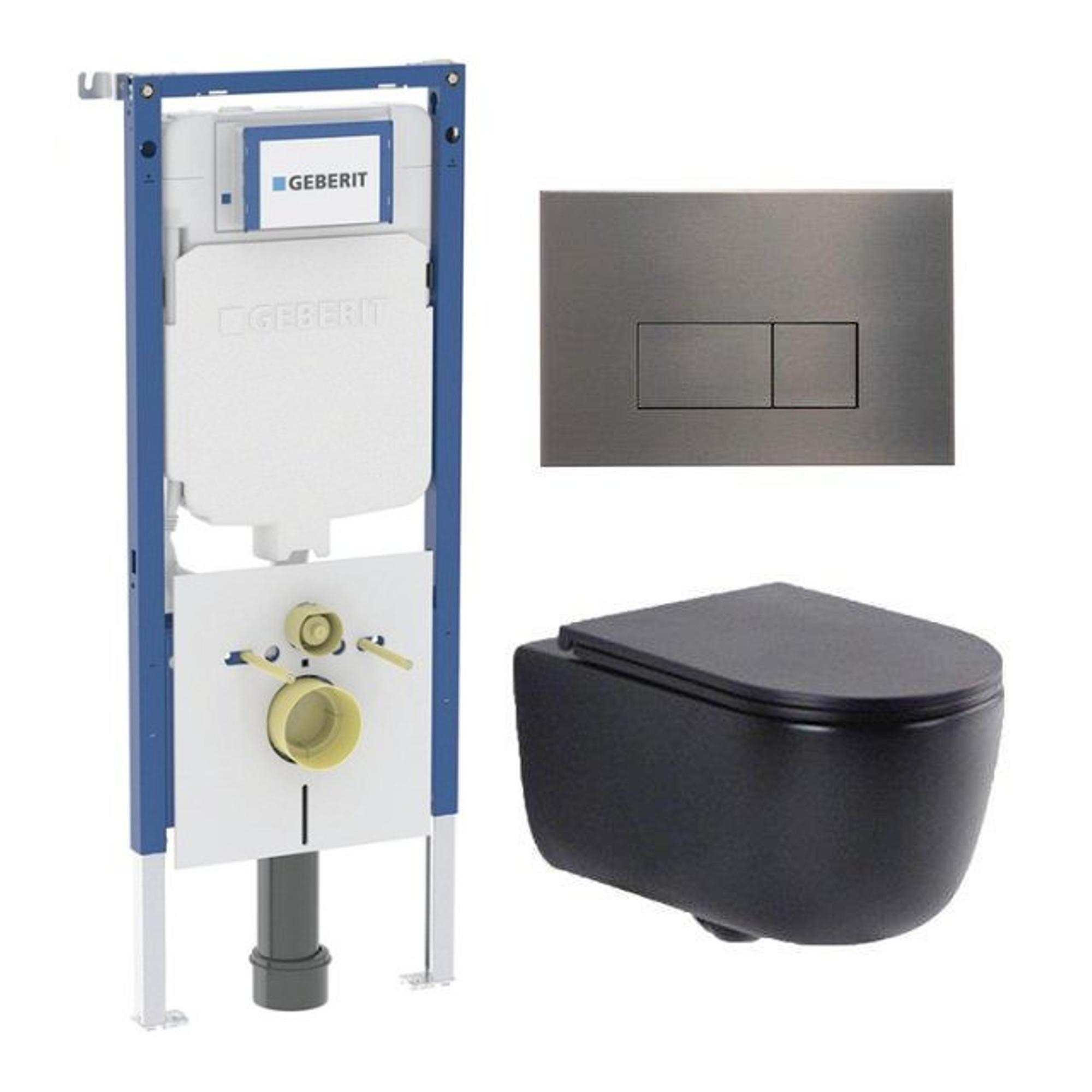 QeramiQ Dely Swirl Pack WC - 36.3x51.7cm - réservoir encastré Geberit UP720 - abattant wc mince - plaque de commande gunmetal - boutons rectangulaires - noir mat