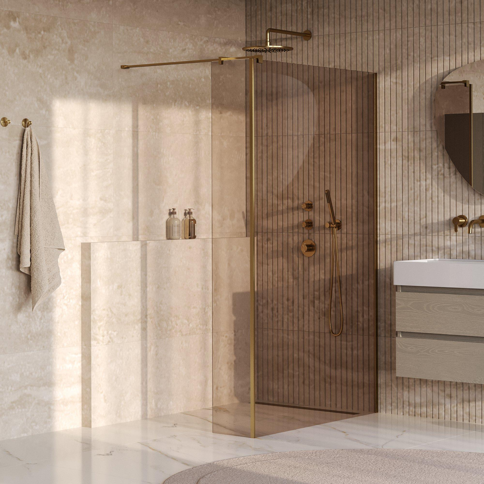 BRAUER Oblivion Douche à l’italienne - 120x200cm - paroi latérale 30 cm - revêtement verre - verre bronze - PVD or brossé