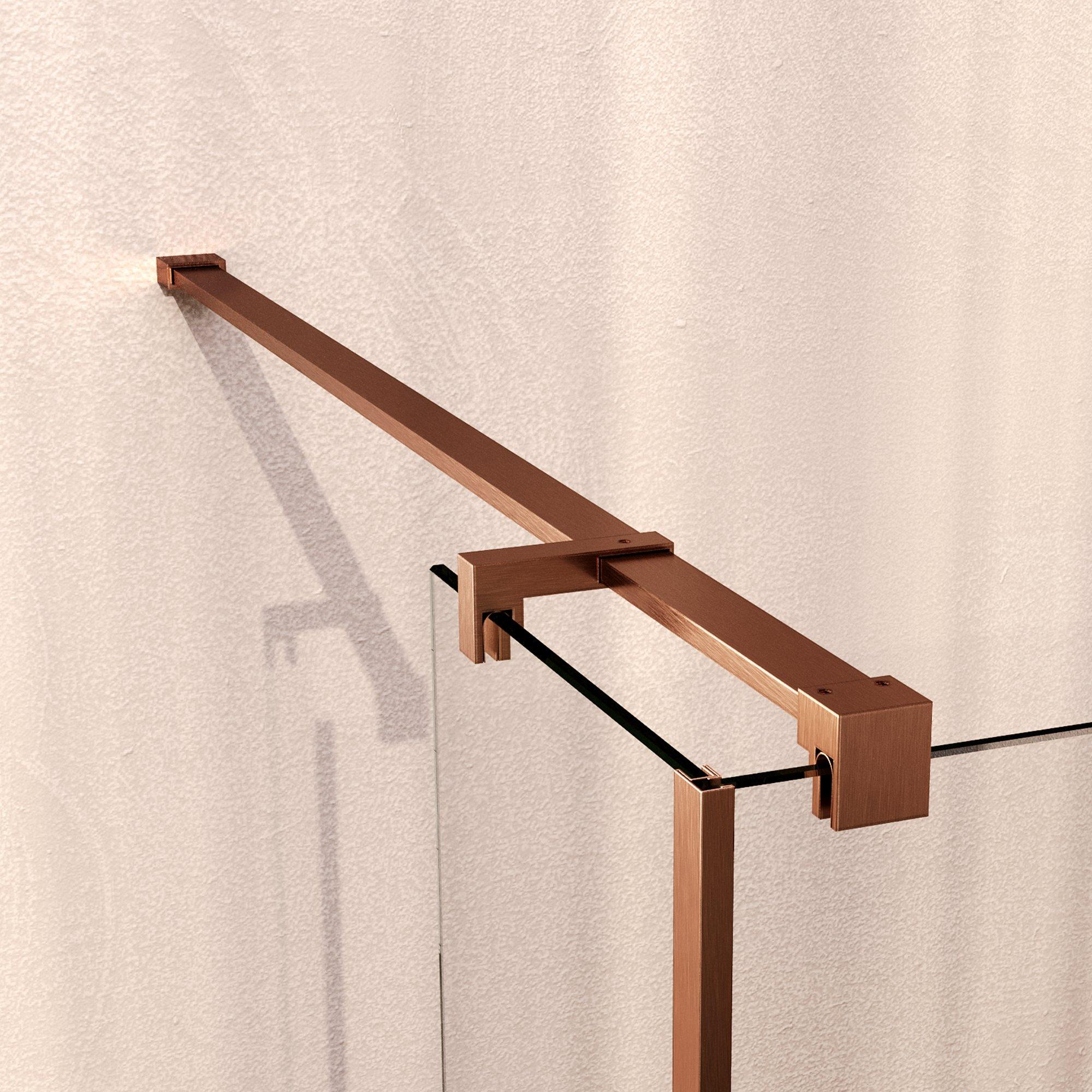 Avec une épaisseur de 8 mm, le verre est solide et sécurisé, tandis que le revêtement spécial protège contre les dépôts de calcaire et la saleté. Cela signifie que vous nettoyez moins souvent et profitez plus longtemps d'une surface claire et sans rayures. Le revêtement PVD sur la quincaillerie assure également une protection durable contre la corrosion, ce qui permet à la couleur cuivre de rester belle même après des années. Vous investissez ainsi dans un produit qui est non seulement beau, mais aussi durable sans compromis sur la qualité.