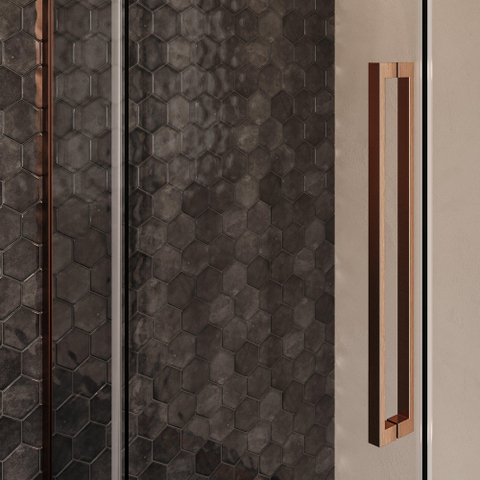 L'apparence de cette cabine de douche est intemporelle et raffinée, grâce au verre clair qui agrandit visuellement l'espace et au cadre en cuivre brossé PVD qui ajoute une touche chaleureuse et luxueuse. Cet accent de couleur unique fait de la cabine un véritable point focal, sans dominer. Le design est épuré et minimaliste, ce qui lui permet de s'adapter facilement à différents styles de salle de bains, du moderne au classique. En choisissant cette cabine, vous donnez à votre salle de bains une mise à niveau exclusive qui se remarque immédiatement et dont vous pouvez être fier.