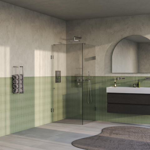 Avec une épaisseur de 8 mm, le verre est solide et sûr, tandis que le revêtement spécial empêche l'eau et la saleté d'adhérer rapidement. Cela rend le nettoyage beaucoup plus facile et prolonge la durée de vie de la cabine. L'acier inoxydable revêtu PVD est non seulement esthétique, mais aussi extrêmement durable et résistant aux conditions humides quotidiennes de la salle de bains. Vous investissez ainsi dans un produit qui dure des années sans compromettre la qualité ou l'apparence. Fiabilité et durabilité sont essentielles pour une salle de bains que vous utilisez avec plaisir.
