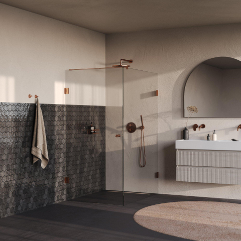 Avec une épaisseur de 8 mm, le verre de cette cabine offre non seulement sécurité mais aussi robustesse durable. Le revêtement PVD en cuivre brossé protège le verre contre les rayures et la corrosion, rendant la cabine résistante à une utilisation quotidienne et aux conditions humides. De plus, le revêtement spécial en verre crée un effet déperlant, réduisant l'adhérence du calcaire et de la saleté. Cela signifie moins de nettoyage et une durée de vie prolongée de votre cabine de douche. Vous investissez ainsi dans un produit non seulement beau, mais aussi fiable et facile à entretenir.