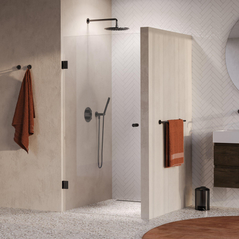 Cette porte de niche est un exemple d’élégance moderne. Le verre clair assure une apparence transparente et lumineuse qui agrandit visuellement votre salle de bains. La finition gunmetal brossée ajoute une touche industrielle subtile sans dominer. Grâce au design sans profilé, un look épuré et minimaliste se crée, s’intégrant parfaitement aux tendances d’intérieur contemporaines. Vous créez ainsi une salle de bains intemporelle dans laquelle vous entrez avec plaisir chaque jour.