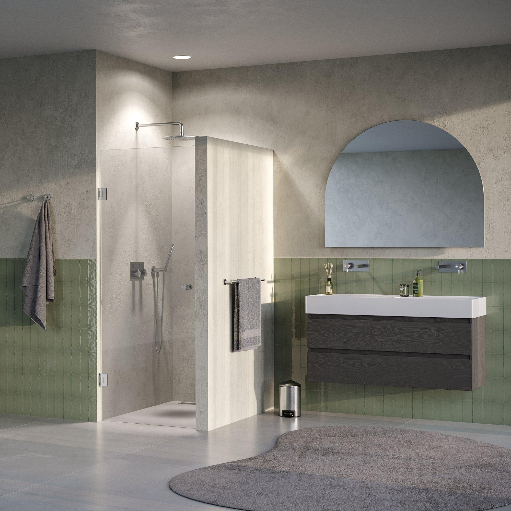 La porte battante est réversible, ce qui signifie que vous décidez de quel côté elle s'ouvre. Cela rend la porte adaptée à presque toutes les niches de douche et assure une flexibilité maximale lors de l'installation. Avec des dimensions de 60x200 cm, elle s'adapte parfaitement aux espaces de niche standard. Le mouvement de rotation fluide rend l'entrée et la sortie confortables et sûres. Grâce au revêtement du verre, le verre reste clair et sans taches, ce qui contribue à une expérience de salle de bains hygiénique et fraîche.
