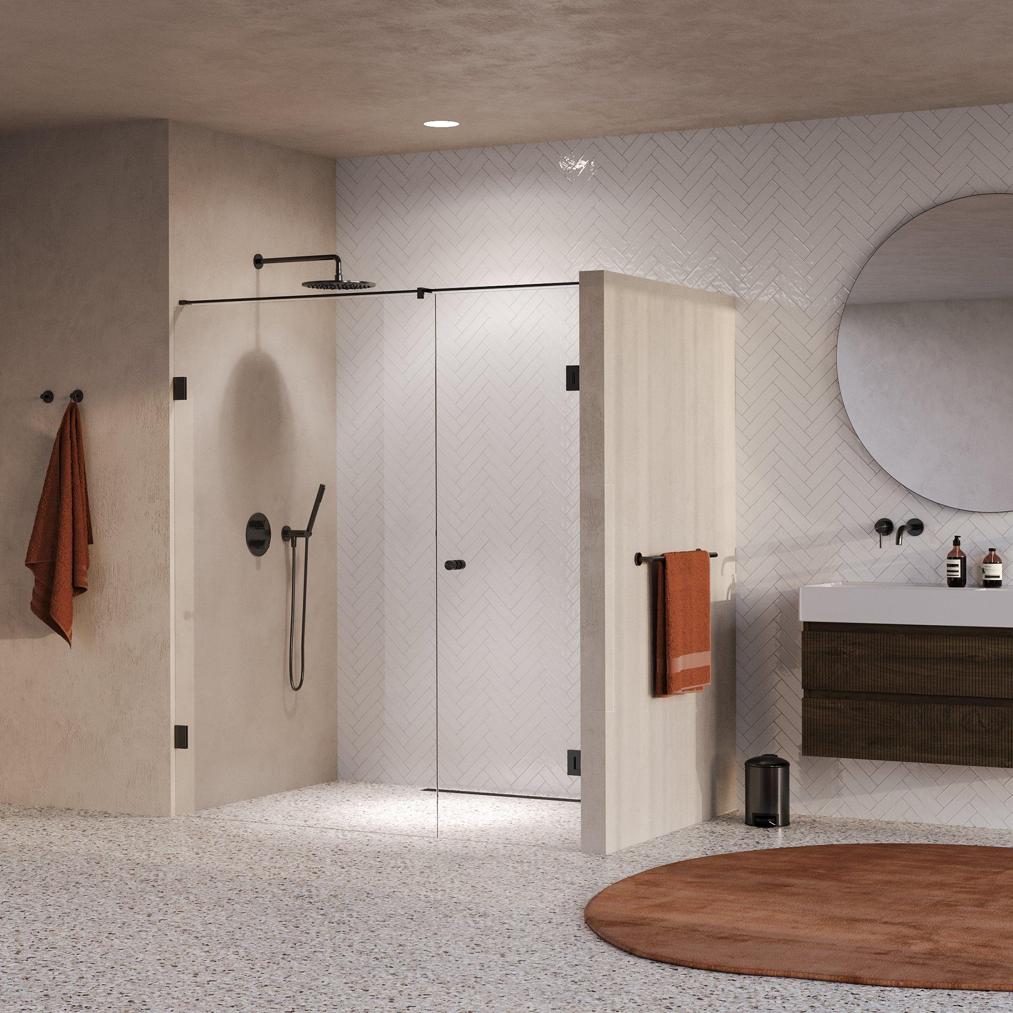 Avec cette porte de niche de haute qualité, vous donnez à votre salle de bains un aspect moderne et luxueux qui attire immédiatement l’attention. La combinaison de verre clair avec un revêtement subtil crée une atmosphère fraîche et ouverte, tandis que la finition PVD gunmetal brossé ajoute une touche robuste et contemporaine. Grâce à la conception intelligente avec une porte battante de 70 cm fixée au mur et une largeur totale de 180 cm, cette porte de niche s’adapte parfaitement à presque tous les angles de douche. Le montage réversible vous offre en outre une flexibilité maximale pour aménager votre salle de bains. Ce produit transforme votre douche en un espace élégant et fonctionnel où vous prendrez plaisir à vous doucher chaque jour.