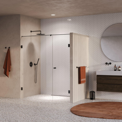 Les lignes épurées et le verre clair assurent un aspect intemporel qui s’harmonise facilement avec divers styles de salle de bains. Le revêtement PVD gunmetal brossé offre une finition métallique luxueuse qui est non seulement belle à voir, mais aussi résistante aux rayures et à la décoloration. Ainsi, votre porte de niche restera comme neuve pendant des années. Le design minimaliste agrandit visuellement l’espace, ce qui est un grand avantage surtout dans les petites salles de bains. Avec cette porte, vous choisissez un élément élégant qui donne à votre salle de bains une mise à niveau exclusive.
