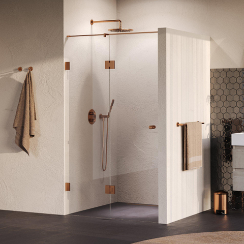 Cette porte de niche se distingue immédiatement par son design raffiné et l'aspect chaleureux du cuivre brossé. Le revêtement PVD assure non seulement une couleur éclatante, mais aussi une protection durable contre l'usure et la corrosion. Le verre clair avec revêtement renforce le caractère moderne et laisse passer librement la lumière, rendant votre salle de bains plus spacieuse et lumineuse. Avec cette porte, vous donnez à votre salle de bains une apparence exclusive à la fois intemporelle et tendance. Vous créez ainsi une ambiance qui invite à la détente et au confort.