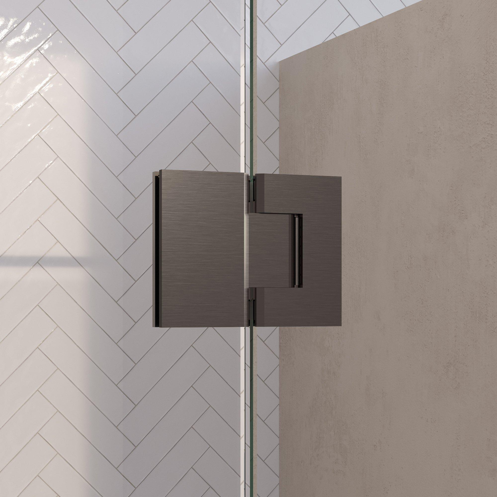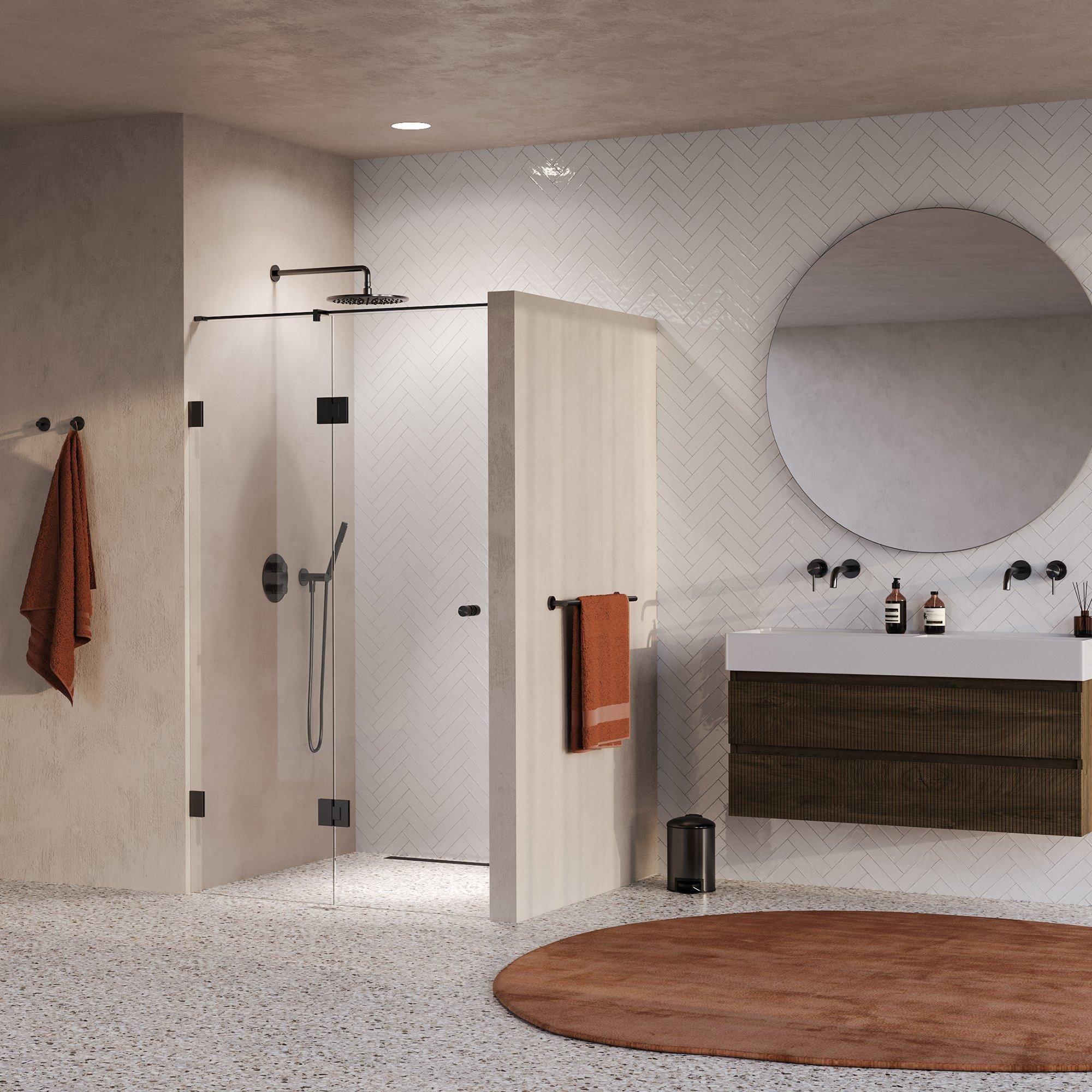 Cette porte de niche est un exemple d’élégance raffinée. Le verre clair offre une apparence transparente et lumineuse, rendant votre salle de bains plus spacieuse et fraîche. La finition PVD gunmetal brossé donne un éclat anthracite subtil qui correspond parfaitement aux tendances modernes de la salle de bains. Cela fait de la porte non seulement un élément fonctionnel, mais aussi un objet de design élégant. Grâce aux matériaux et à la finition de haute qualité, le produit dégage qualité et luxe, faisant de votre salle de bains un véritable point focal.