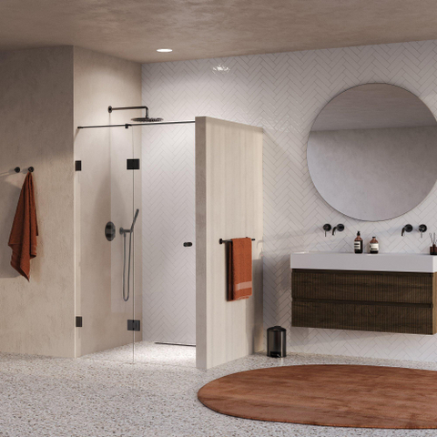 Cette porte de niche se distingue immédiatement par son design raffiné et moderne. Le verre clair crée un effet d'espace, rendant votre salle de bains plus grande et plus lumineuse. La finition PVD gunmetal brossée sur le cadre en acier inoxydable donne une teinte anthracite subtile qui s'accorde parfaitement avec les intérieurs contemporains. Cela fait de la porte non seulement une solution pratique, mais aussi un véritable élément décoratif. Grâce aux matériaux de haute qualité, la porte conserve son apparence pendant des années, même dans des conditions humides. Vous ajoutez ainsi un élément élégant qui donne à votre salle de bains une allure exclusive.