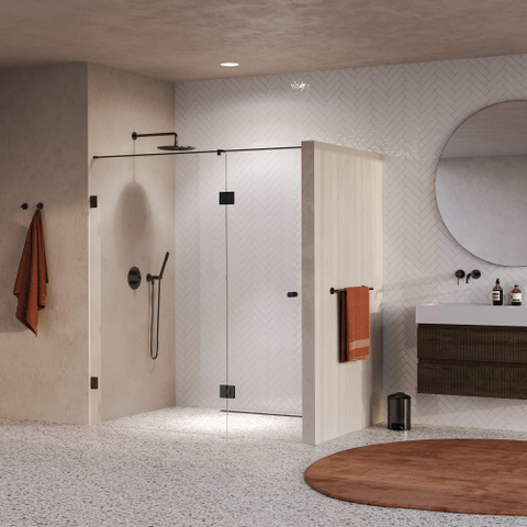 Les lignes épurées et le verre clair confèrent à cette porte de niche une apparence moderne et raffinée. La finition PVD gunmetal brossée ajoute une touche métallique subtile mais remarquable qui donne à votre salle de bains une atmosphère exclusive. Ce matériau est non seulement beau, mais aussi durable, ce qui permet à la porte de conserver son aspect élégant même en cas d’utilisation intensive. Grâce à la conception sans profilé, l’attention reste entièrement portée sur le verre et la finition, ce qui crée un aspect minimaliste et luxueux. Vous profitez ainsi d’une salle de bains qui non seulement est fantastique, mais constitue également un véritable point fort.