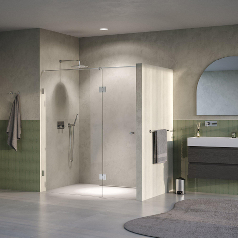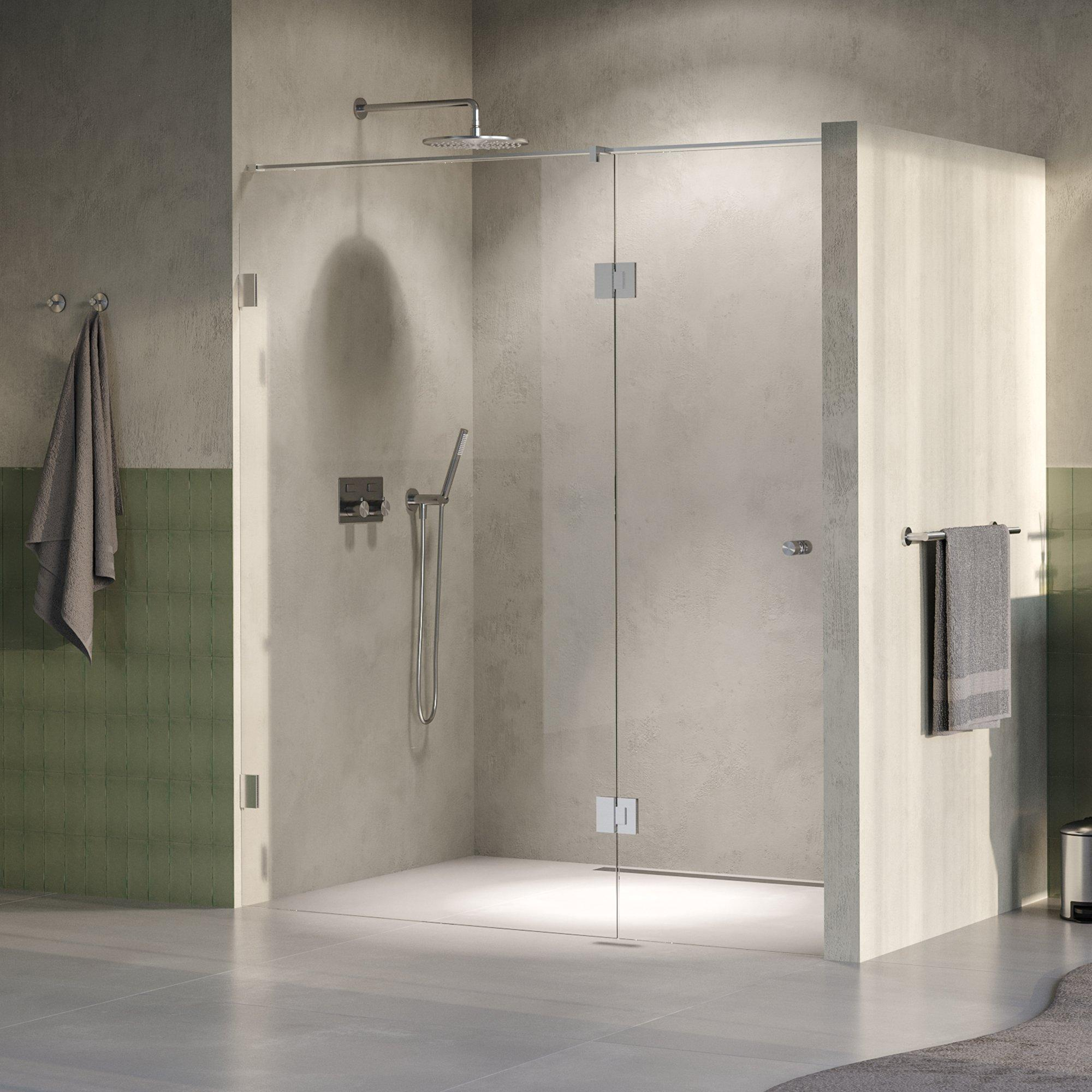 Avec une porte battante de 70 cm de large fixée directement sur le verre, cette porte de niche offre une liberté de mouvement optimale et une grande facilité d'utilisation. Le montage réversible permet de placer la porte à gauche ou à droite, afin d'adapter parfaitement la porte à la configuration de votre salle de bains. Les dimensions généreuses de 180x200 cm assurent une entrée confortable et suffisamment d'espace pendant la douche. Grâce au revêtement du verre, l'entretien reste minimal, vous laissant plus de temps pour profiter.