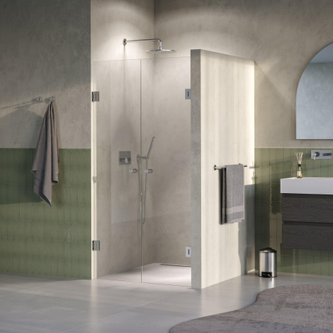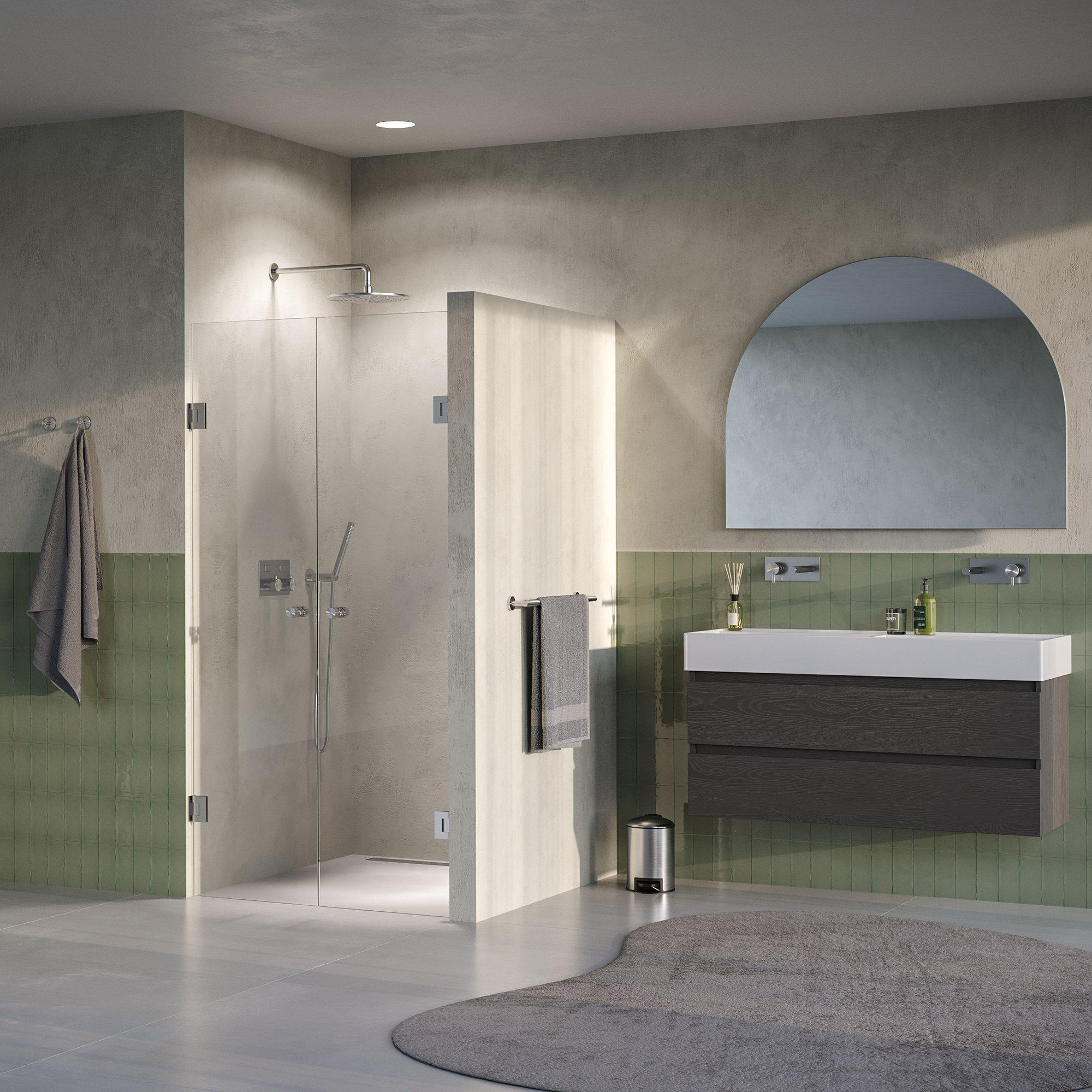 Cette porte battante est un exemple d'élégance intemporelle. Le verre clair offre un aspect transparent et lumineux qui agrandit visuellement votre salle de bains. La finition en acier inoxydable brossé avec revêtement PVD apporte une brillance subtile et une touche moderne, sans dominer. Cela rend la porte parfaite à combiner avec différents styles de salle de bains, du design épuré et minimaliste au style chaleureux et industriel. Avec cette porte, vous ajoutez un élément élégant qui attire immédiatement l'attention et élève l'ambiance de votre salle de bains.