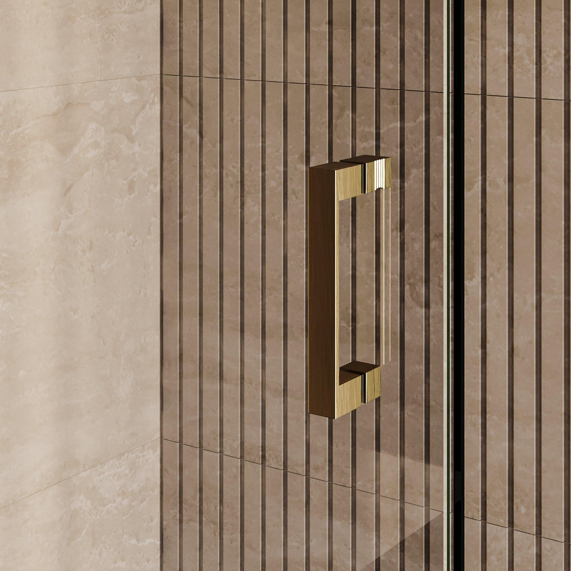 Fabriquée en acier inoxydable de haute qualité et en verre de sécurité clair de 8 mm d'épaisseur, cette porte de niche est conçue pour durer. Le revêtement spécial du verre protège contre les dépôts de calcaire et la saleté, ce qui maintient le verre clair et facilite le nettoyage. La couche PVD or brossé est résistante aux rayures et conserve son éclat même en cas d'utilisation intensive. Vous investissez ainsi dans un produit qui est non seulement beau, mais aussi fiable et facile à entretenir, année après année.