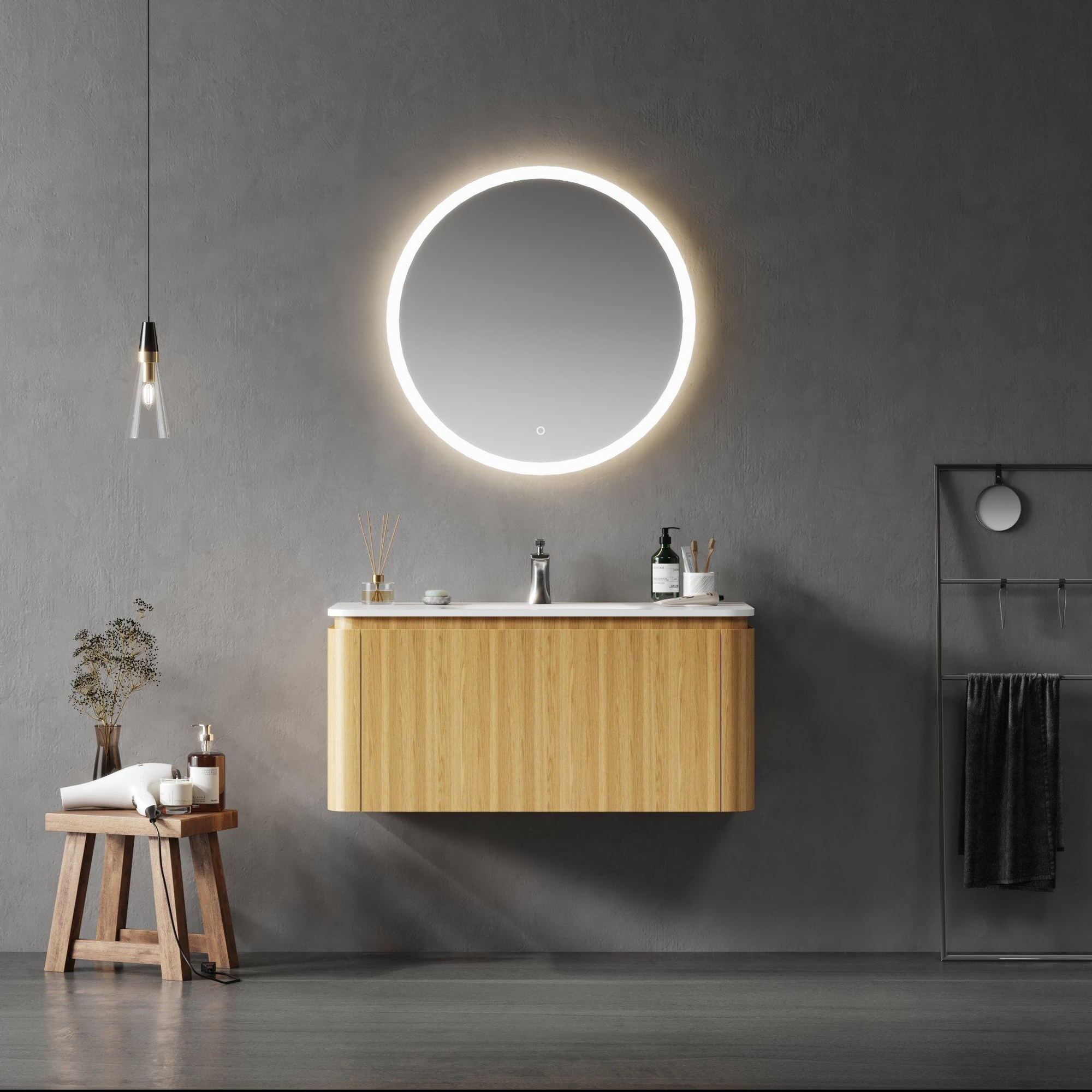 Saniclass Terra Meuble de salle de bains avec vasque - 101x46x1.2cm - coins arrondis - 1 vasque - 1 trou de robinet - solid surface - blanc mat