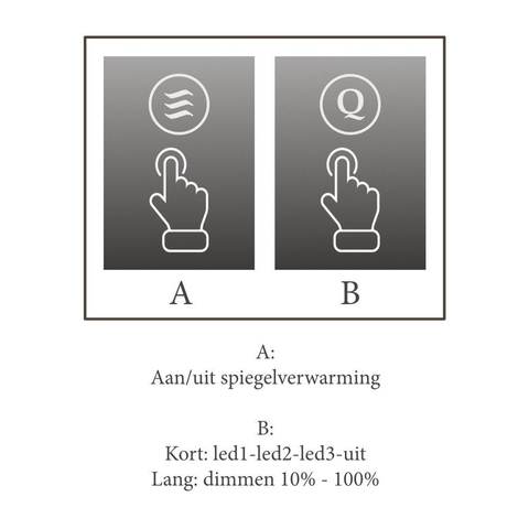 Ce miroir est non seulement beau, mais aussi extrêmement fonctionnel. Grâce aux icônes tactiles sur la surface, vous pouvez facilement ajuster l'éclairage et activer le chauffage du miroir. Le design innovant allie style et facilité d'utilisation, vous permettant de profiter chaque jour d'une expérience de salle de bain sans effort. La combinaison de technologies de haute qualité et d'un design réfléchi fait de ce miroir un incontournable pour les maisons modernes.