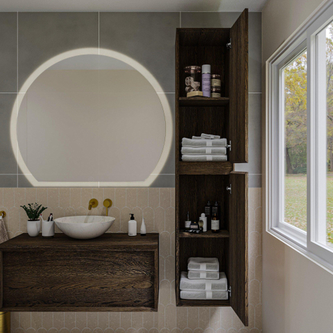 Cette armoire haute combine style, durabilité et fonctionnalité de manière unique. Vous obtenez ainsi non seulement un meuble pratique, mais aussi un véritable élément décoratif qui complète votre salle de bains. Complétez votre salle de bains de rêve avec ce meuble élégant et découvrez par vous-même la qualité.