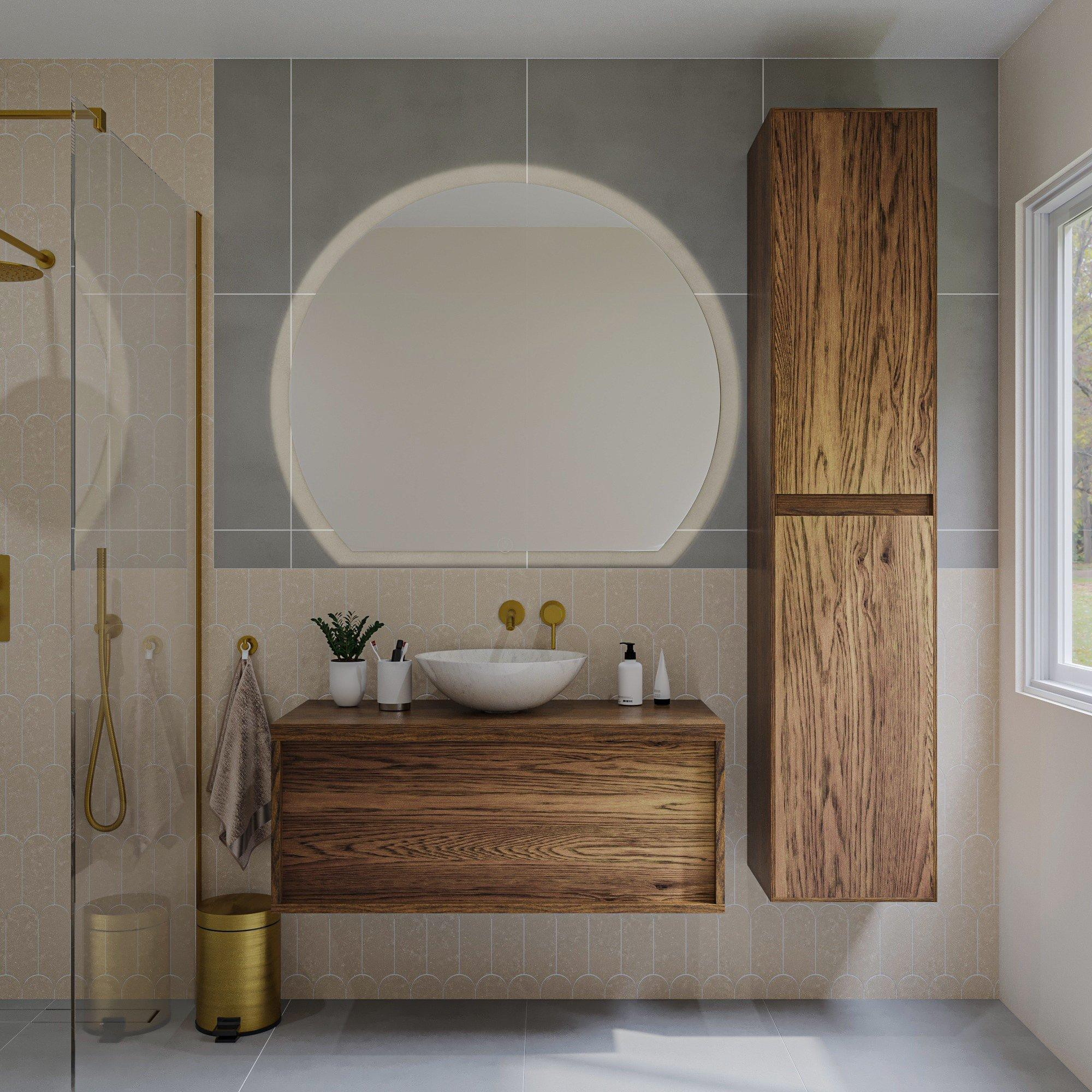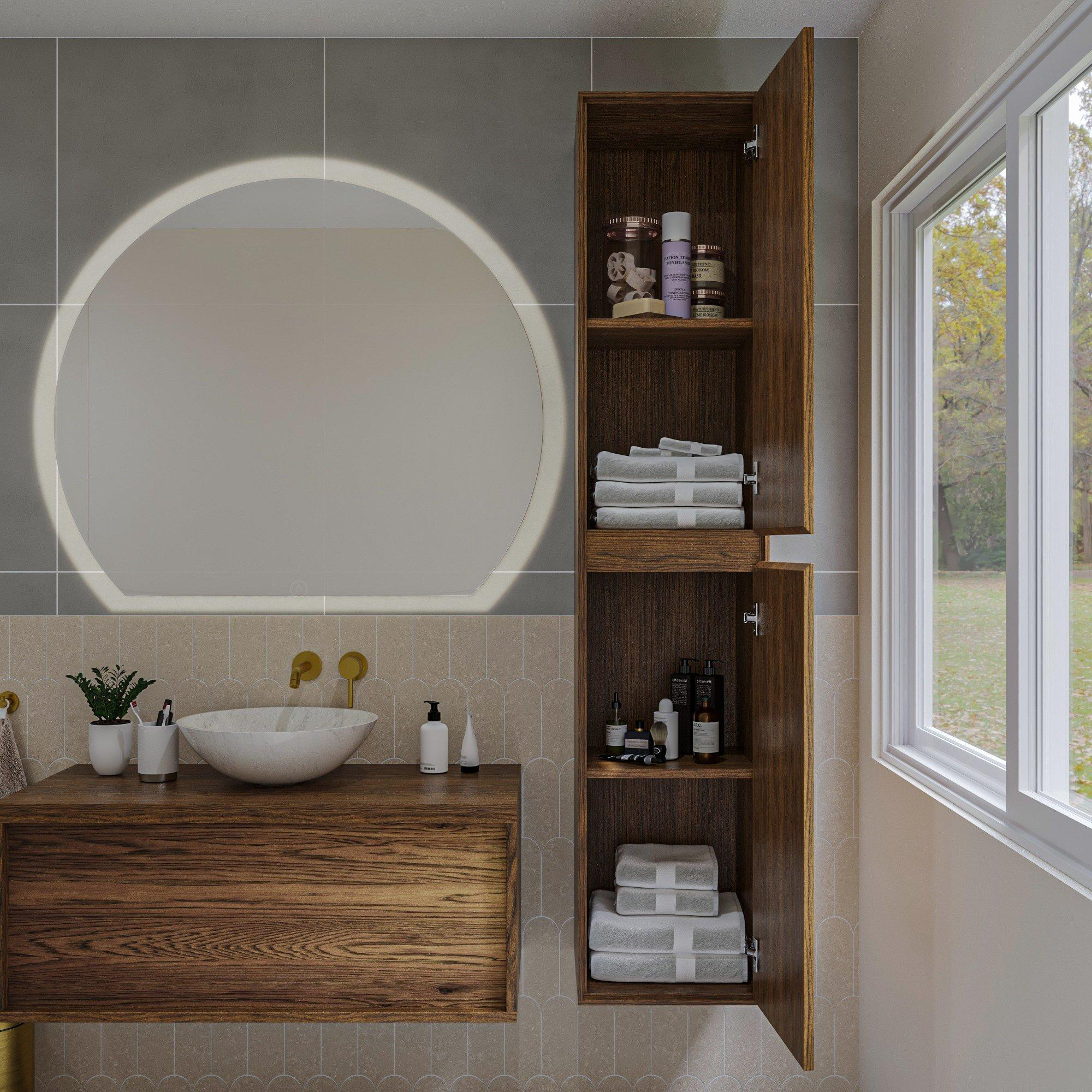 La finition chaude Walnut pure de cette armoire haute donne à votre salle de bains une apparence naturelle et luxueuse. Le chêne massif est soigneusement fini, ce qui permet de voir magnifiquement le grain du bois et crée une atmosphère authentique. Cela fait de l'armoire non seulement un meuble fonctionnel, mais aussi un véritable point de mire. Grâce à son design intemporel, vous pouvez facilement combiner avec d'autres meubles et accessoires de salle de bains pour créer un ensemble harmonieux. Ainsi, vous profitez d'une salle de bains à la fois pratique et élégante.