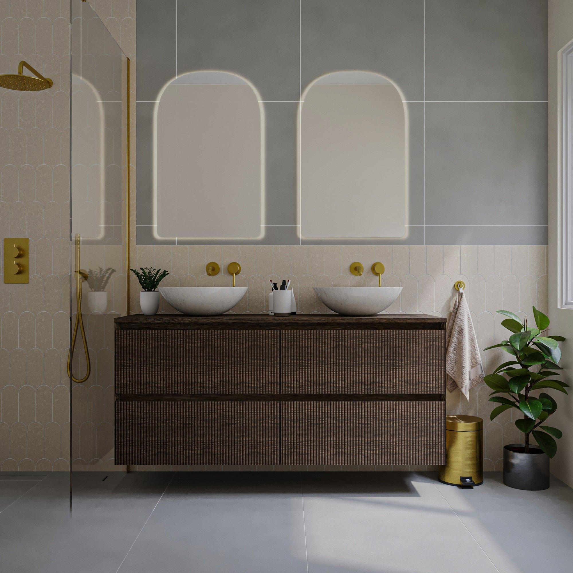 Ce meuble est un véritable point fort grâce au chêne charcoal élégant avec une apparence naturelle et chaleureuse. Les façades verticales à rainures apportent une texture subtile qui donne un caractère supplémentaire au design. Grâce au design sans poignées, le meuble reste épuré et minimaliste, ce qui correspond parfaitement aux salles de bains modernes. Vous ajoutez ainsi facilement une touche élégante et intemporelle qui dure des années sans se démoder.