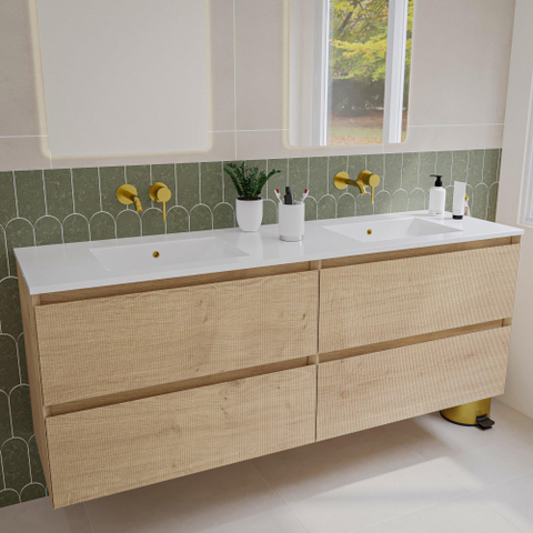 Saniclass Holz Atelier Meuble sous lavabo de salle de bains - 160x45x60cm - 4 tiroirs - Chêne naturel