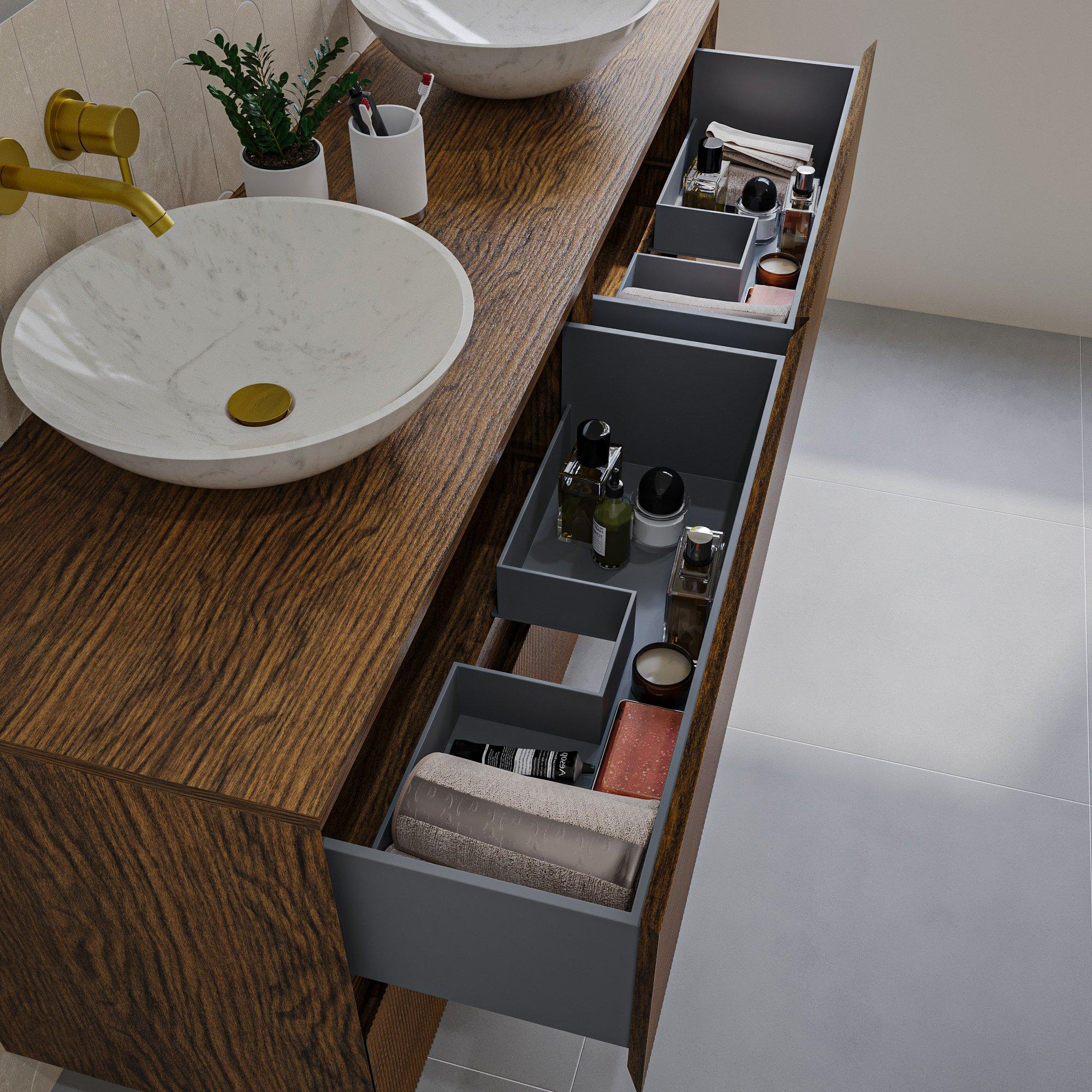 Saniclass Holz Atelier Meuble sous lavabo - 160x45x60cm - 4 tiroirs - Walnut pure