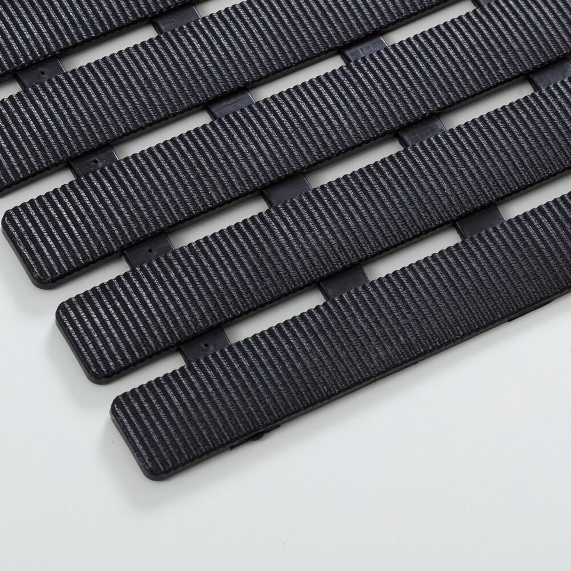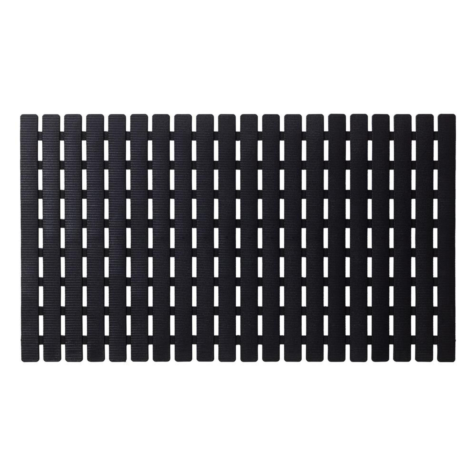 La combinaison de lignes épurées, de formes calmes et d’une couleur noire profonde confère à ce tapis une allure résolument japandi : minimaliste, chaleureuse et pourtant très moderne. Le motif à lattes crée un accent graphique qui se marie à merveille avec des carreaux effet béton clairs, mais aussi avec le marbre, l’effet bois ou des sols foncés. Comme le design est si sobre et intemporel, il se combine facilement avec d’autres accessoires de bain tels que des robinets noirs, des profilés de douche noir mat ou des meubles de salle de bains en bois. Vous ajoutez ainsi non seulement de la sécurité, mais aussi un détail élégant qui donne un caractère supplémentaire à l’ensemble de votre salle de bains.