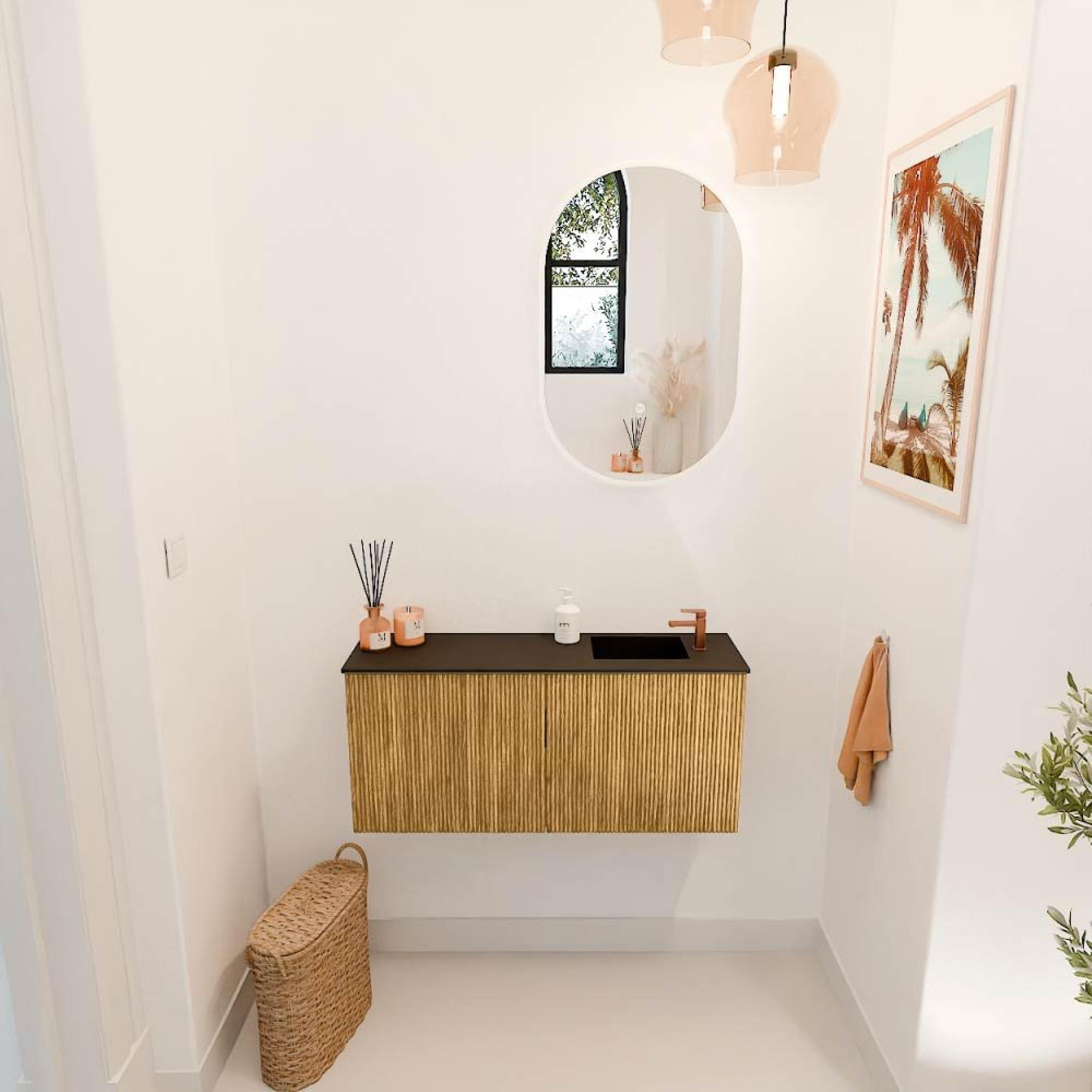 Mondiaz JOYA 90cm meuble de salle de bains - couleur Oak - Vasque FAYE position Droite 1 trou de robinet couleur Urban