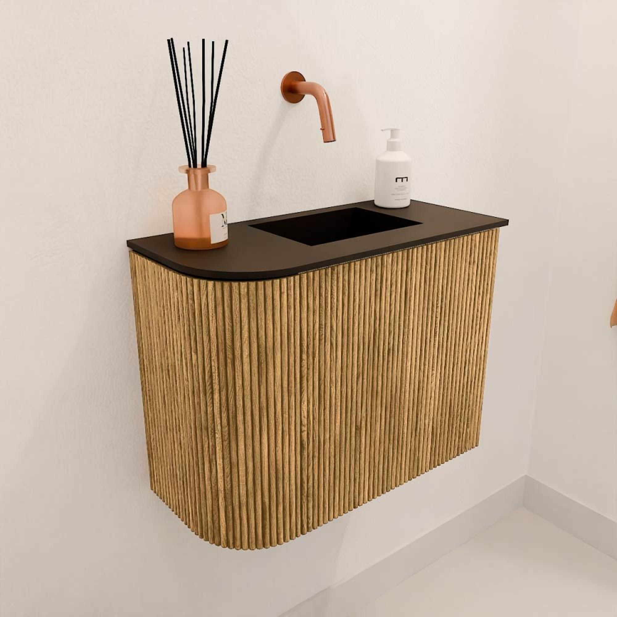 Mondiaz JOYA 51.6cm meuble de toilette - arrondi gauche couleur Oak - Vasque FAYE position Droite Sans trou de robinet couleur Urban.