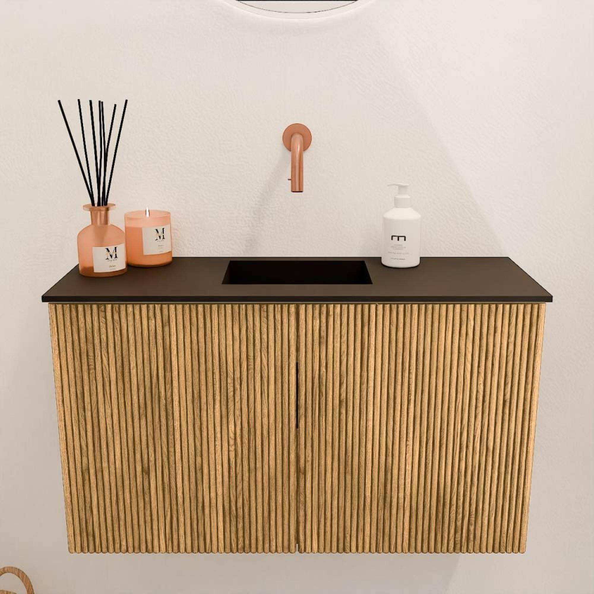 Mondiaz JOYA 70cm meuble de salle de bains - couleur Oak - Vasque FAYE position Milieu Sans trou de robinet couleur Urban