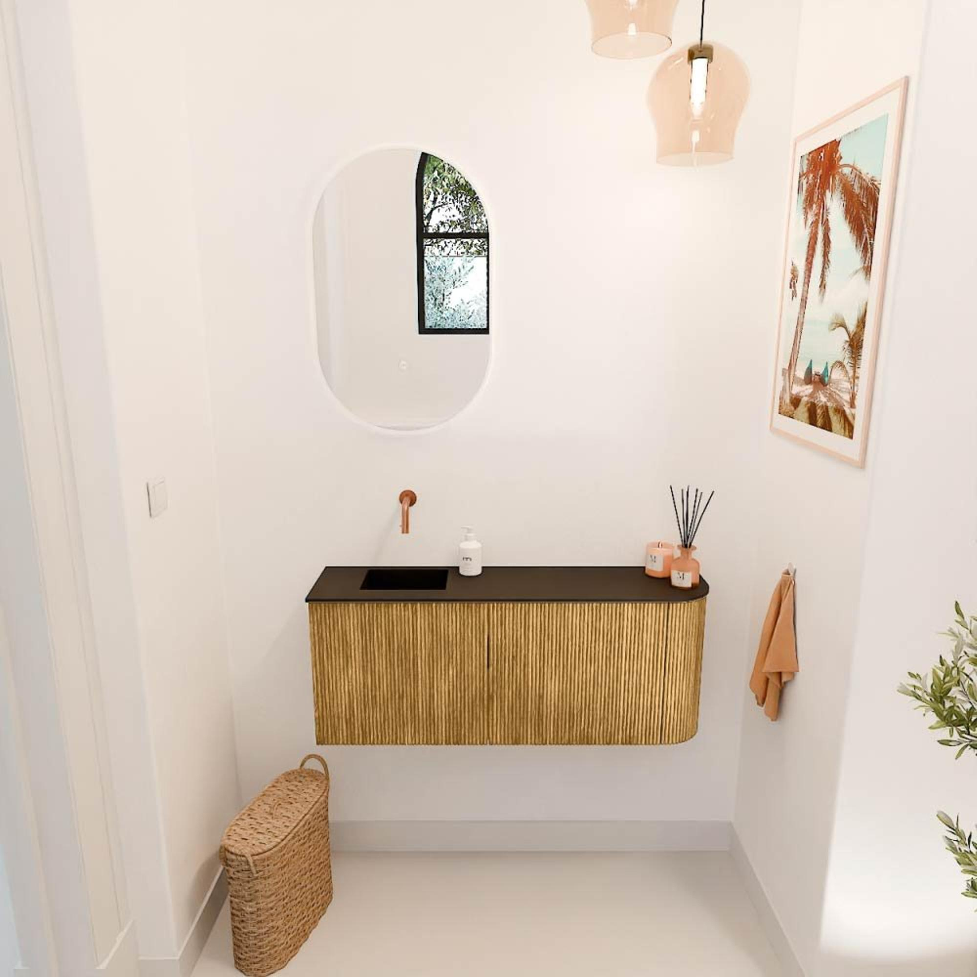 Mondiaz JOYA 101.6cm meuble de salle de bains - arrondi droite couleur Oak - Vasque FAYE position Gauche Sans trou de robinet couleur Urban