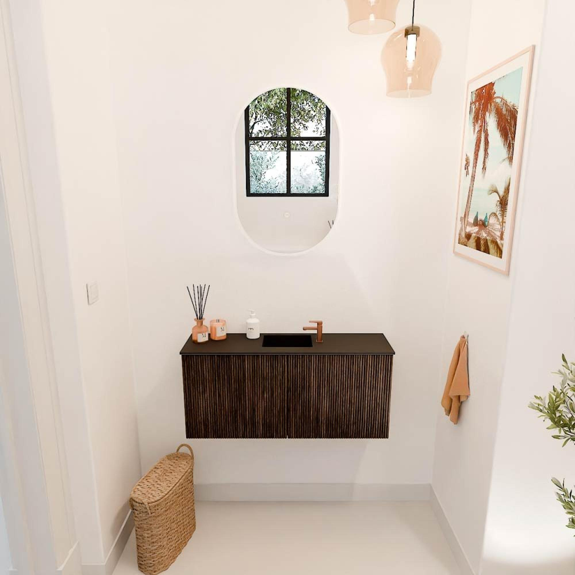 Mondiaz JOYA 90cm meuble de salle de bains - couleur Walnut - Vasque FAYE position Milieu 1 trou de robinet couleur Urban.