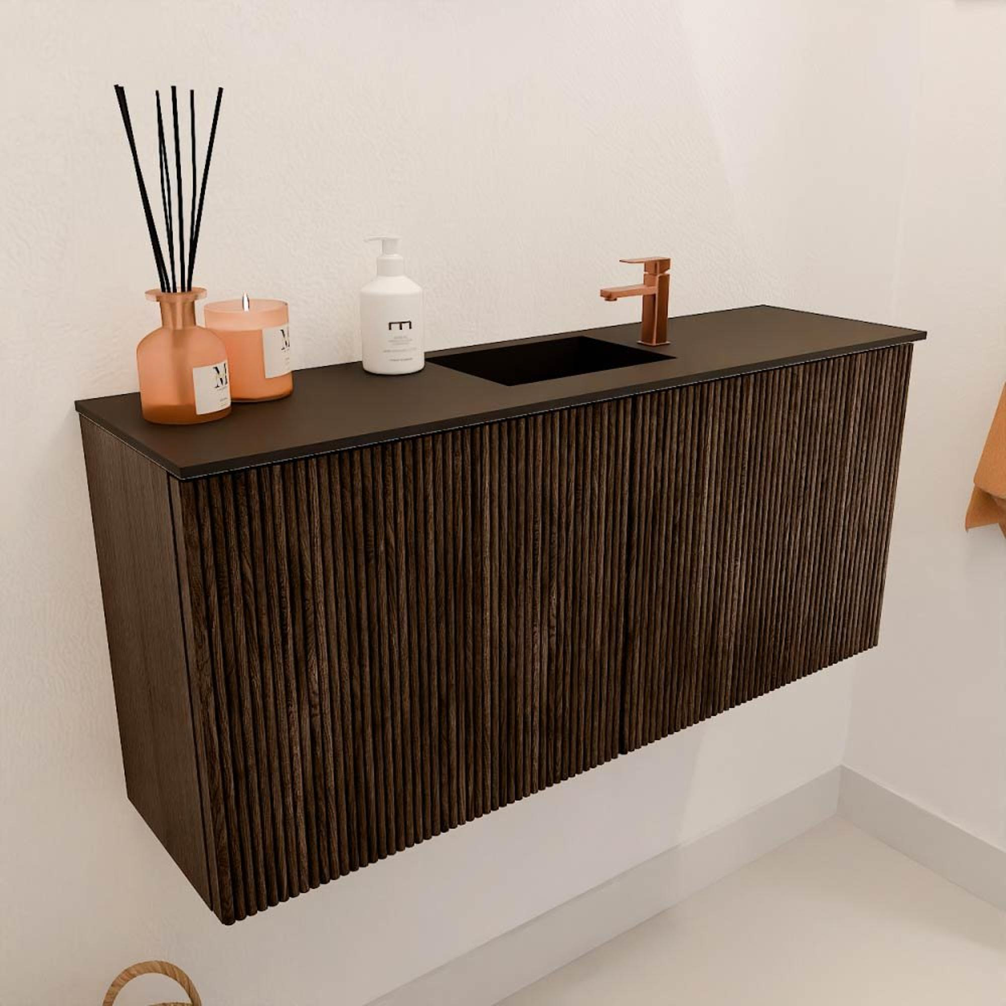 La chaude couleur noyer et le motif cannelé vertical donnent à ce meuble une apparence intemporelle et élégante. L'accent naturel du bois crée une ambiance luxueuse qui donne une touche personnelle à votre salle de bains. Grâce à son design réfléchi, le meuble s'intègre facilement dans des intérieurs modernes comme classiques. Vous créez ainsi un espace qui est non seulement fonctionnel, mais aussi un véritable élément décoratif. La combinaison des matériaux et le contraste subtil de couleur de la vasque Urban complètent l'ensemble et assurent une apparence harmonieuse.Durable
