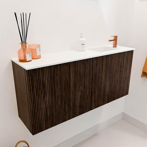 Mondiaz JOYA 90cm meuble de salle de bains - couleur Walnut - Vasque FAYE position Droite 1 trou de robinet couleur Talc.
