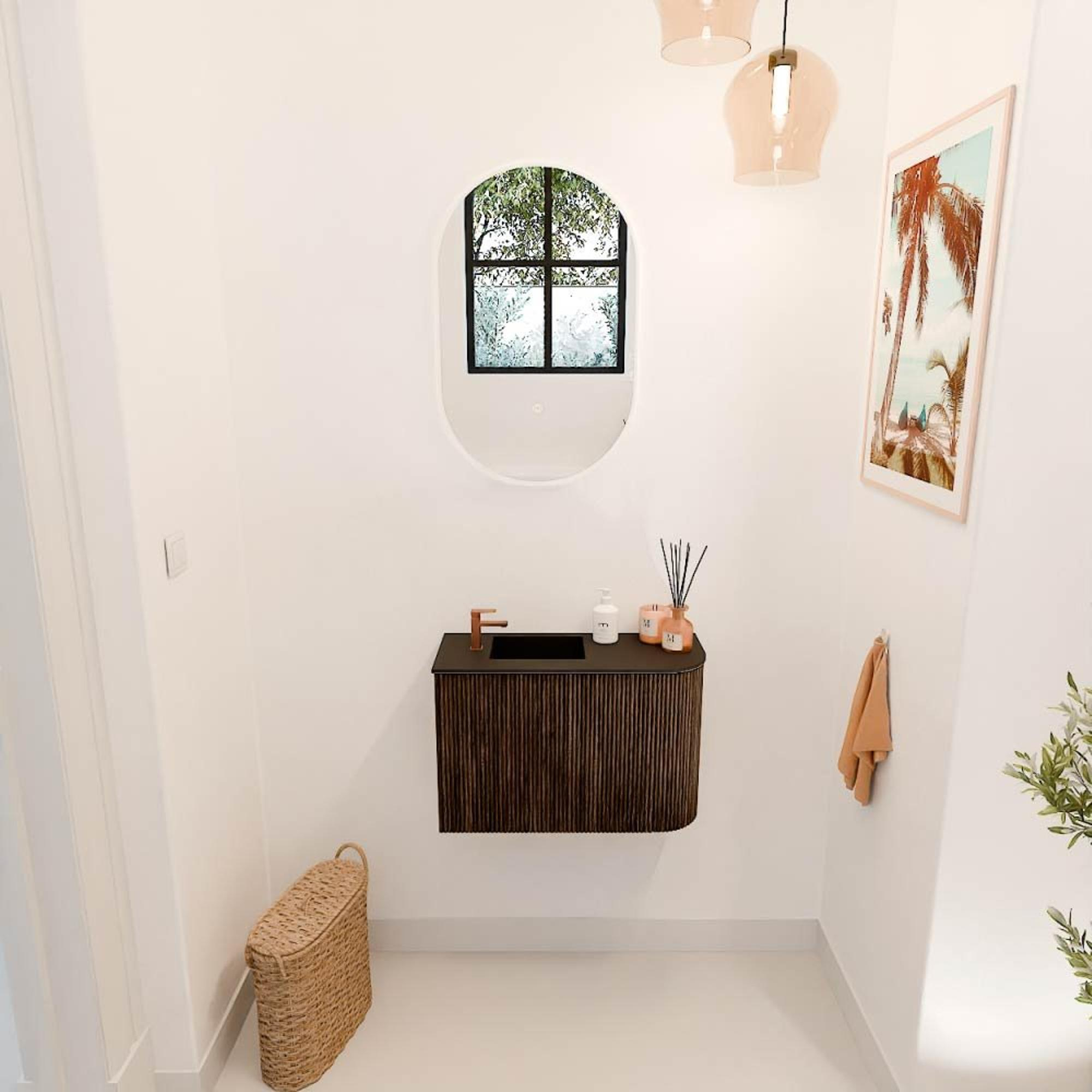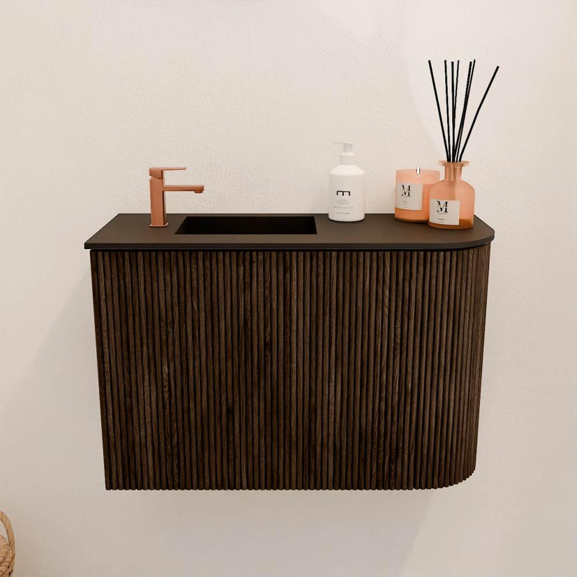 Mondiaz JOYA 61.6cm meuble de toilette - arrondi droit couleur Walnut - Lavabo FAYE position Gauche 1 trou de robinet couleur Urban.