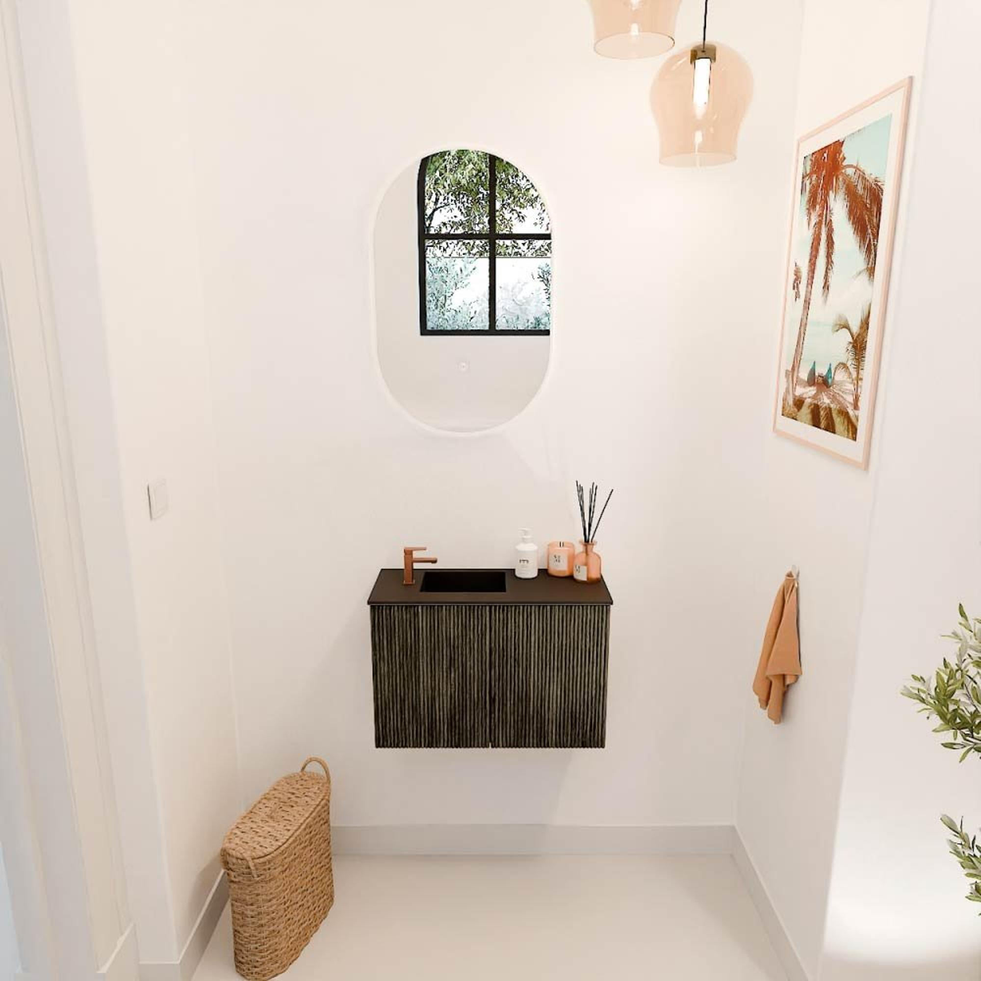Mondiaz JOYA 60cm meuble de toilette - couleur Shadow - Lavabo FAYE position Gauche 1 trou de robinet couleur Urban.
