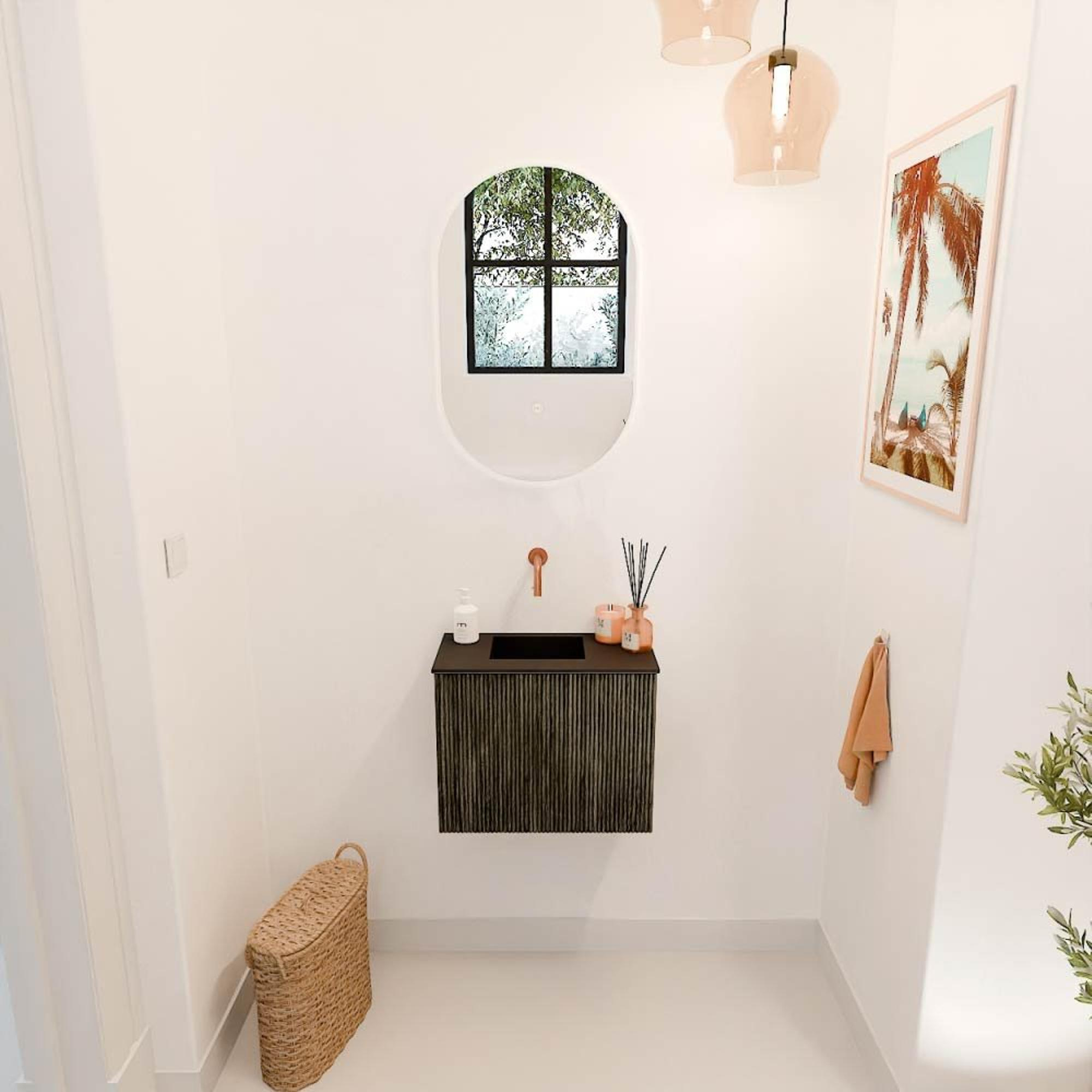 Le meuble se distingue immédiatement par son devant strié, qui apporte non seulement un accent visuel unique mais aussi une expérience tactile. La couleur sombre Shadow confère une apparence moderne et apaisante qui se combine parfaitement avec la vasque fraîche Urban. Cette combinaison fait du meuble un véritable point focal dans votre salle de bains. Le contraste subtil entre les couleurs donne un aspect raffiné et luxueux, sans être trop voyant. Vous profitez ainsi d'un design intemporel qui peut durer des années.