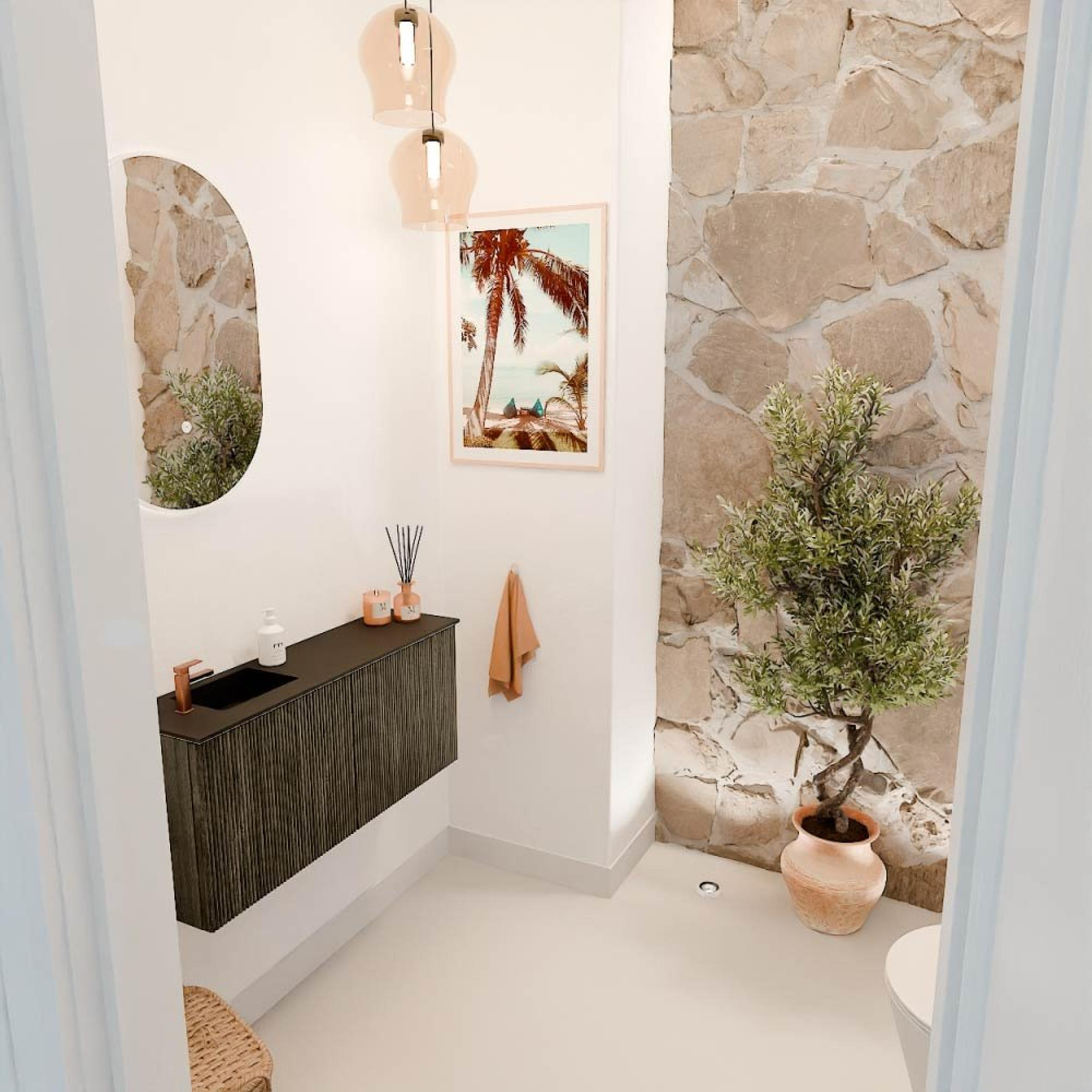 Le meuble se distingue immédiatement par son aspect luxueux et les tons bois naturels qui ajoutent chaleur et caractère à votre salle de bains. Les rainures verticales sur la façade créent un accent de design subtil mais remarquable, à la fois moderne et intemporel. Grâce à la couleur Shadow, le meuble présente un look profond et élégant qui s'harmonise facilement avec différents styles de salle de bains. Vous ajoutez ainsi un élément élégant qui n'est pas seulement beau à voir, mais aussi un véritable point focal dans votre salle de bains.