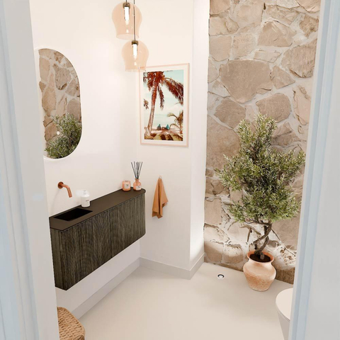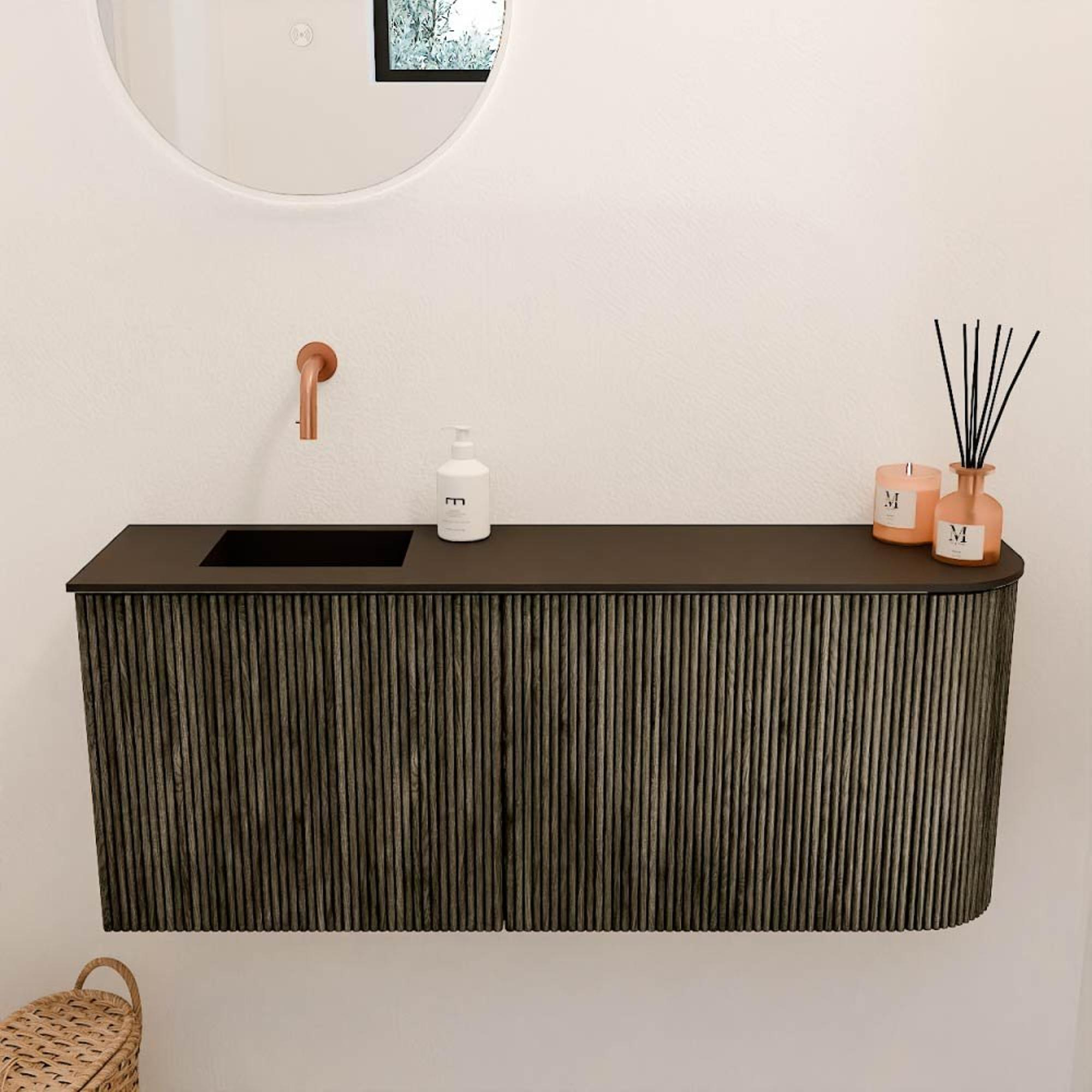 La combinaison de la couleur Shadow avec la façade à rainures crée un aspect contemporain et raffiné. Les rainures verticales donnent au meuble un caractère ludique mais épuré, ce qui en fait un véritable point focal dans votre salle de bains. L'angle arrondi sur le côté droit rend le design unique et apporte une apparence douce et accueillante. Vous ajoutez ainsi facilement une déclaration de design sans que cela soit trop voyant. Ce meuble s'adapte parfaitement à divers styles d'intérieur, du moderne à l'industriel, et élève votre salle de bains à un niveau supérieur.