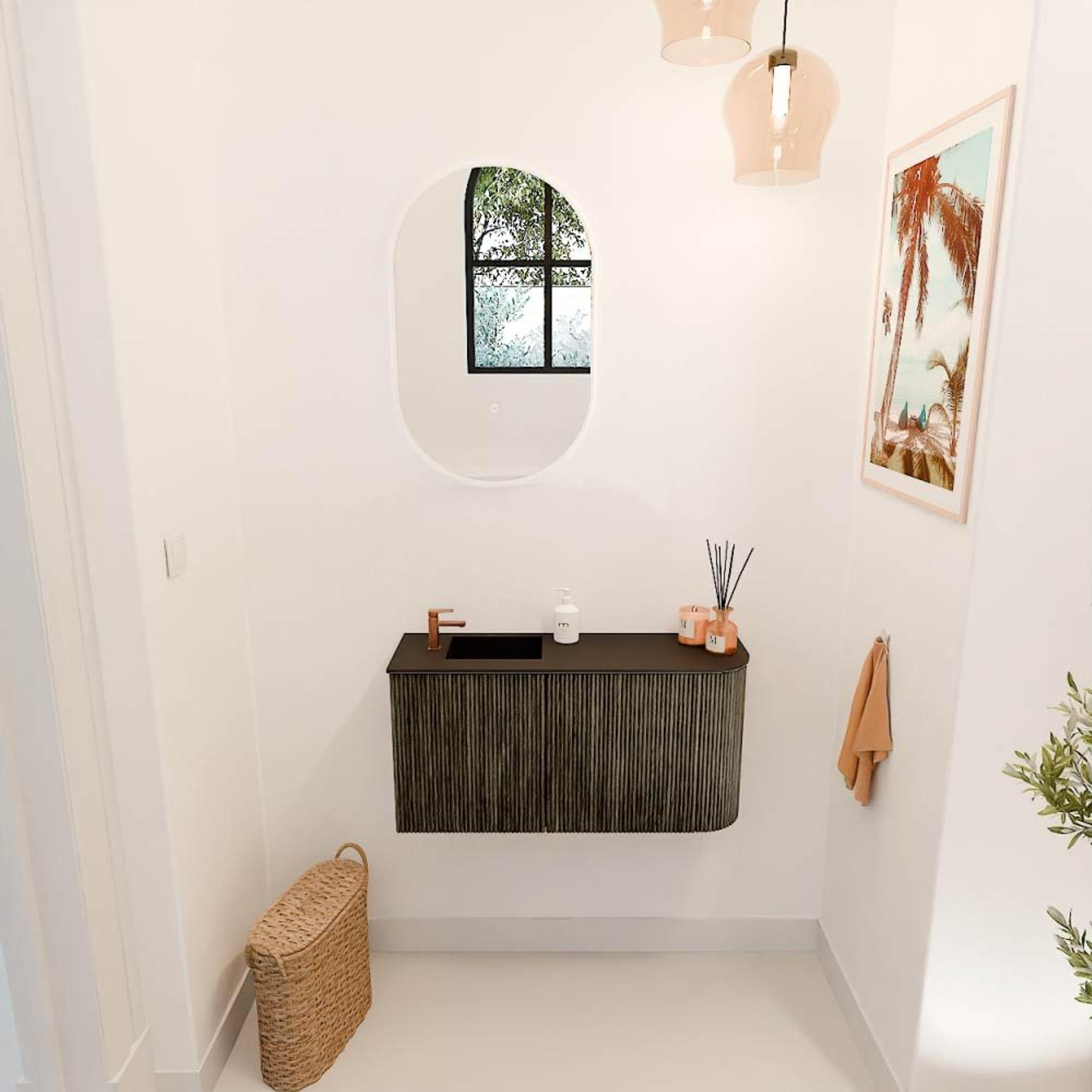 Mondiaz JOYA 81.6cm meuble de salle de bains - arrondi droit couleur Shadow - Vasque FAYE position Gauche 1 trou de robinet couleur Urban.